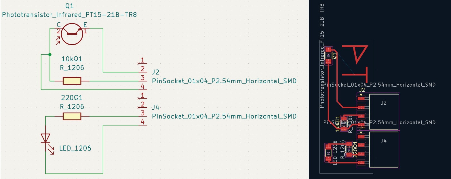 I tested a simple analog input using a PT15-21B/TR8 phototransistor. Its collector connects to 3.3 V through a 10 kΩ resistor and the emitter goes to GND. The junction between them feeds A0. An LED on D6 changes brightness based on ambient light in the room. This experiment demonstrated the analog responsiveness of the XIAO and how easily light intensity can modulate a PWM signal.