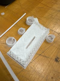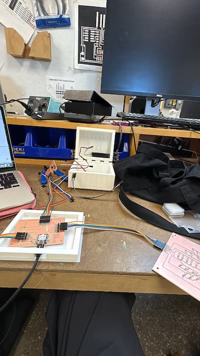 The enclosure components were fabricated using 3D printing. Multiple prints were required to refine fit, especially because the printers were being a tiny bit finicky + I messed up on a couple design counts, including forgetting to put holes in the knuckle. These iterations revealed small but important mismatches between digital models and physical reality, reinforcing the need for test prints when designing enclosures around electronics.