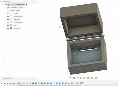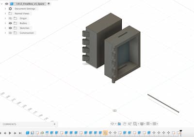 The enclosure was modeled in Fusion, with dimensions driven directly by the size and mounting requirements of the PCBs. Cutouts and internal clearances were iteratively adjusted to ensure that boards could be installed, connected, and removed without excessive force. I was SUPER helped by following a Youtube tutorial on how to design hinges on boxes, with a lot of support from Gert, Harrison, Rodrigo: See here