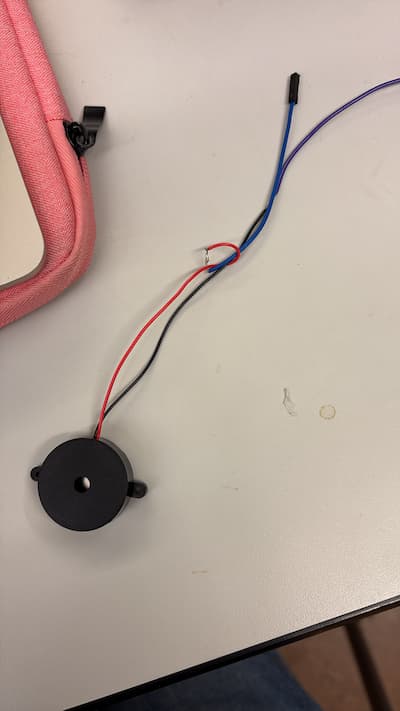 The original buzzer I was using (a piezo) was so faint that I couldn't hear anything. I asked Anthony to help troubleshoot, and he realized it was playing audio: just that you could only hear it if you held the buzzer to your ear. This wouldn't work, so we looked at a few louder alternatives: