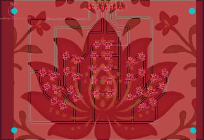 The symmetrical, flower-like arrangement was intentional — the LEDs act as a peripheral cue rather than something that demands constant visual attention.