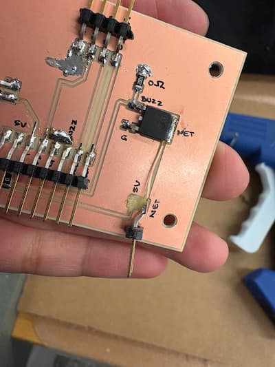 While handling the lid board, I accidentally ripped off the 2-pin header connecting the buzzer to the board. Anthony warned me about this since 2 pin headers are delicate -- I tried to avoid this issue, but momentarily lost control.