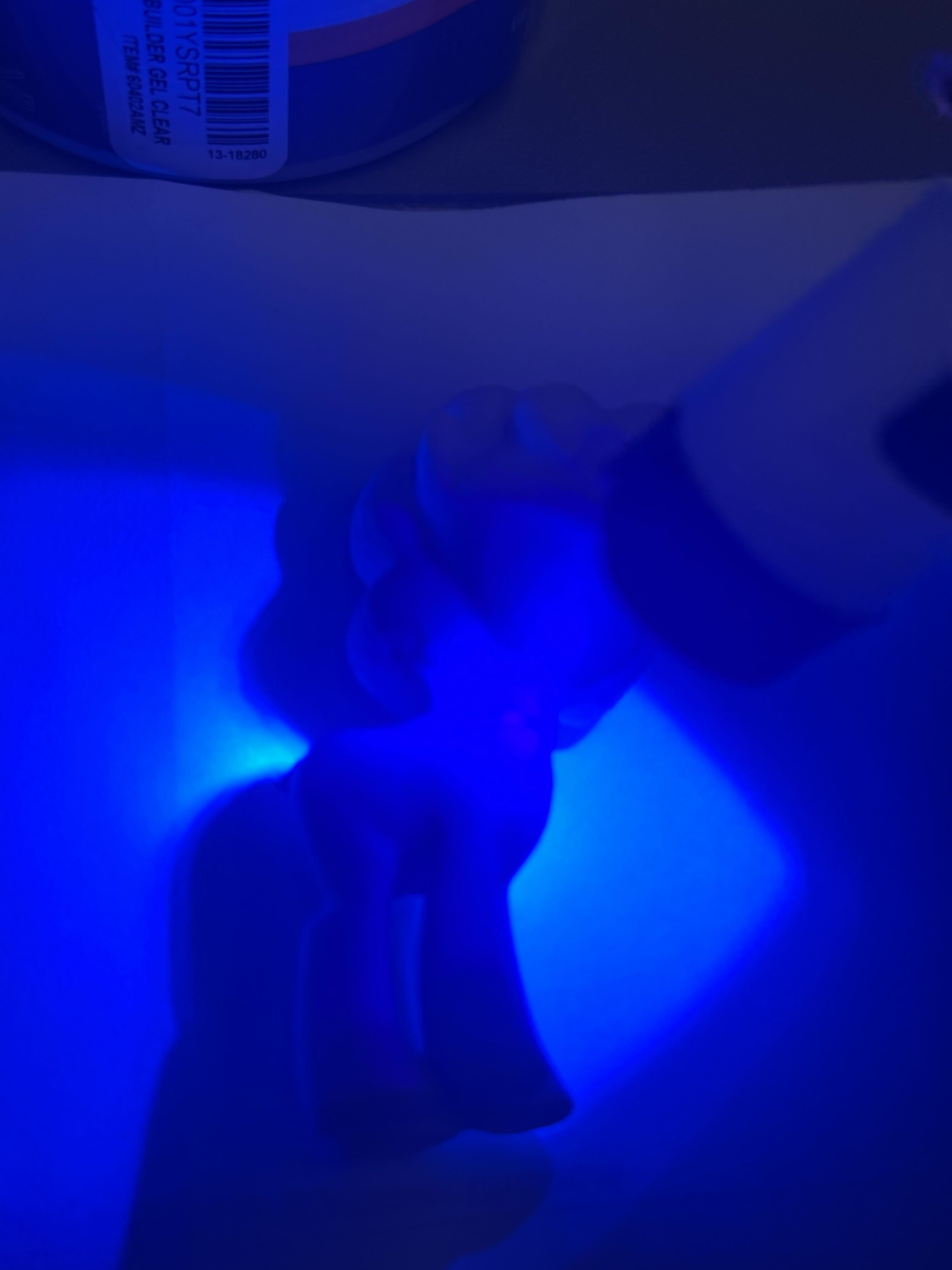 - The UV resin was cured using a UV lamp, which hardened it quickly and created a smooth surface.