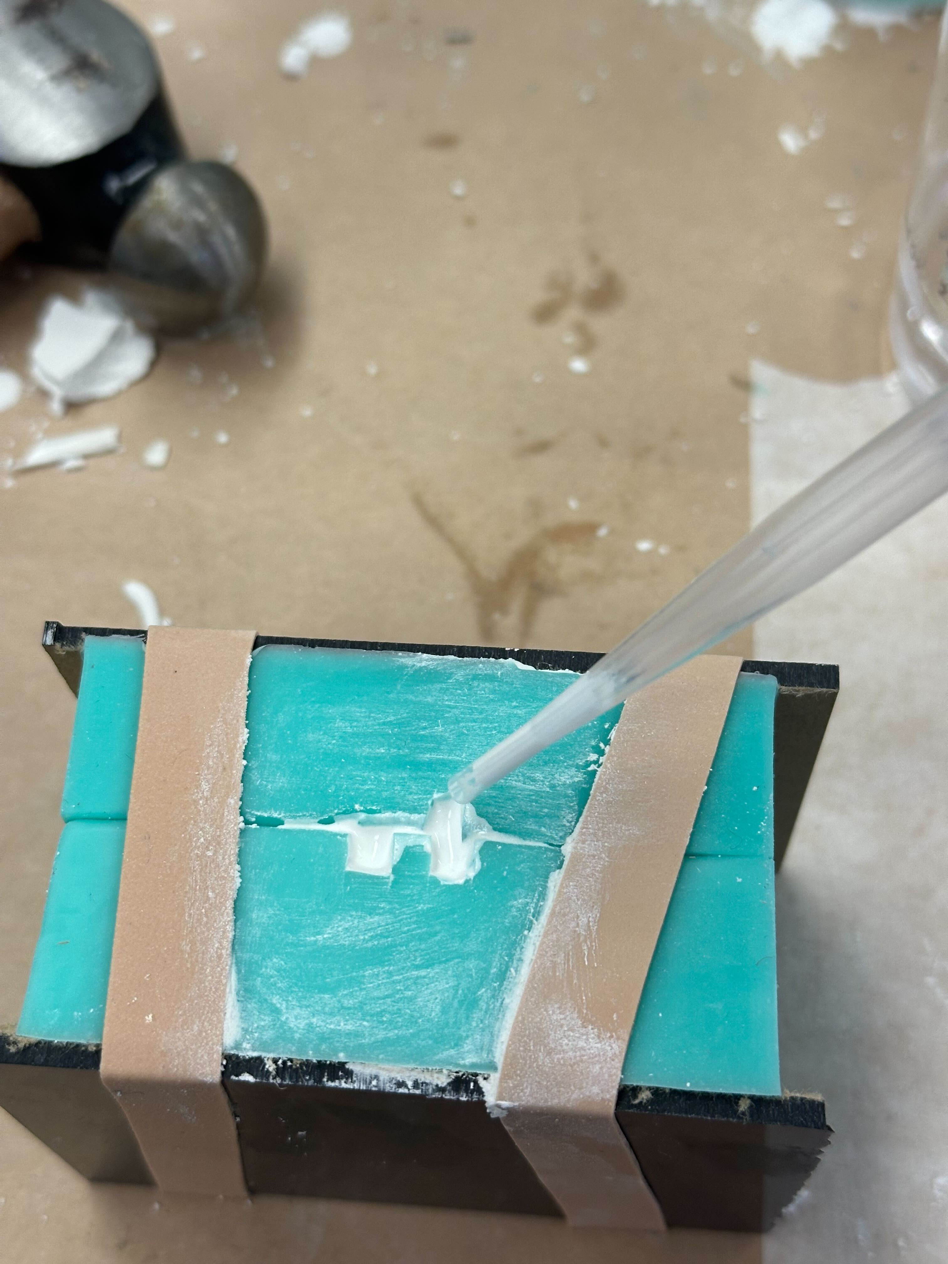 - I first opened the area under the feet and used a syringe to inject the drystone material into the mold.