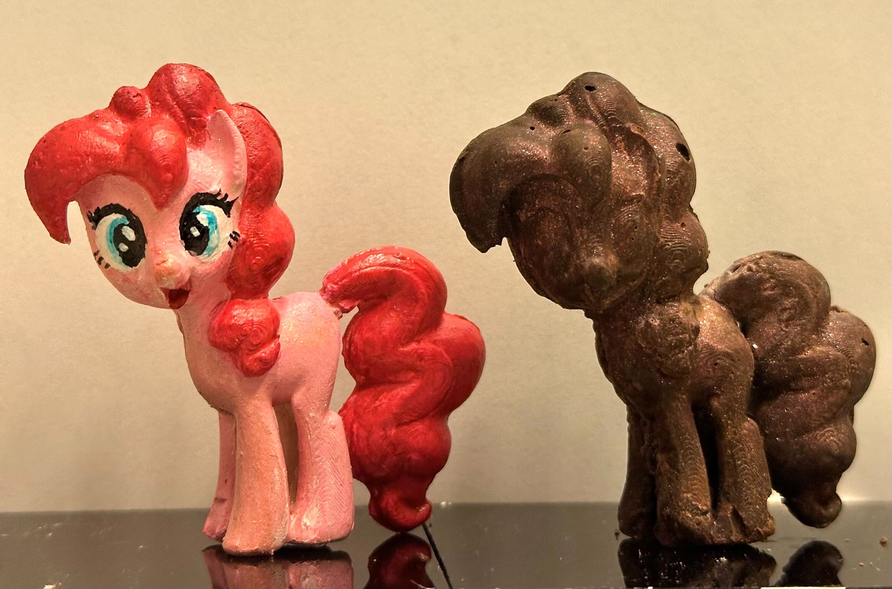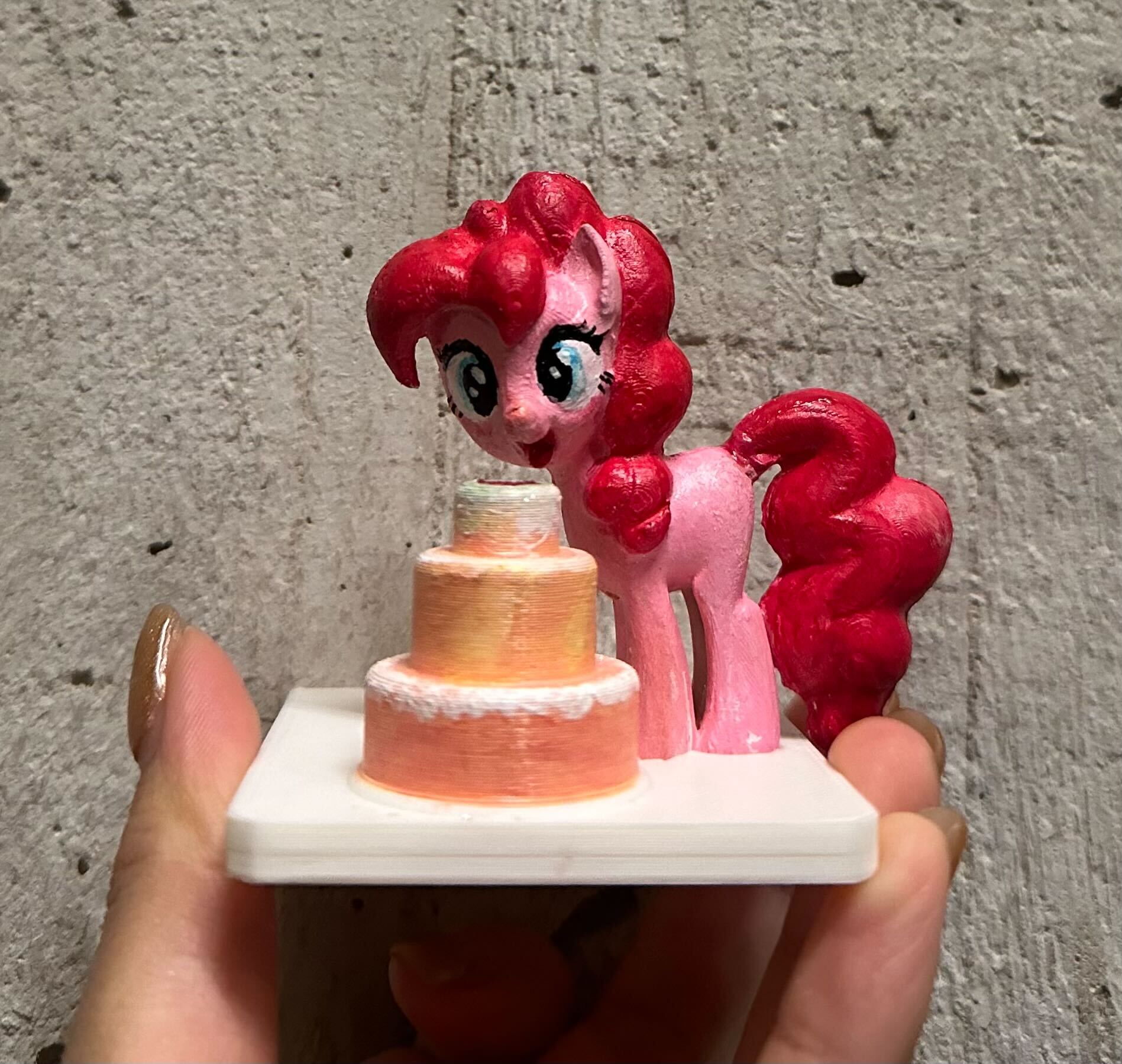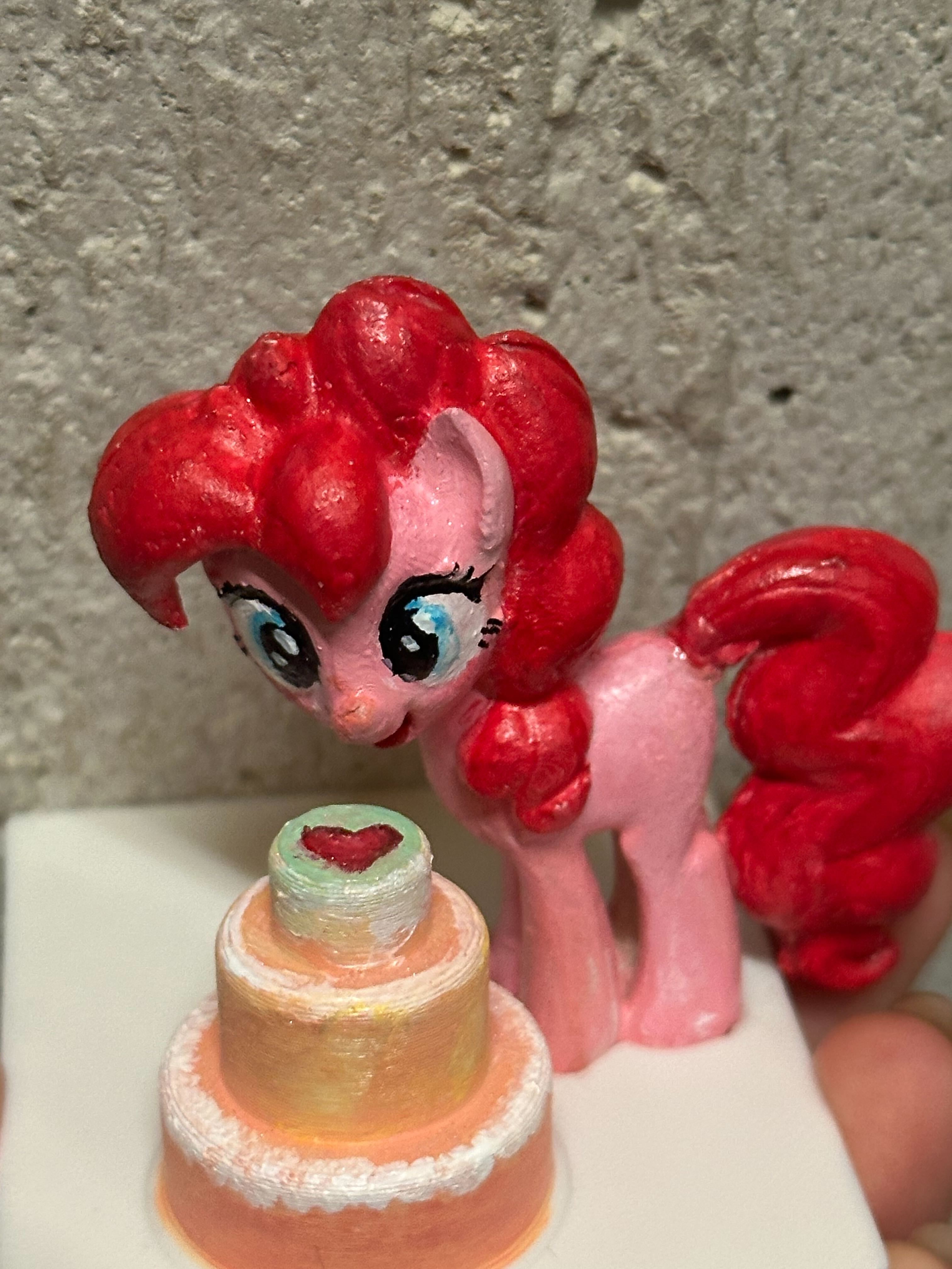 Then I realize that the pony is clearly staring at something, so I 3D printed a cake and a holder to go along with it: