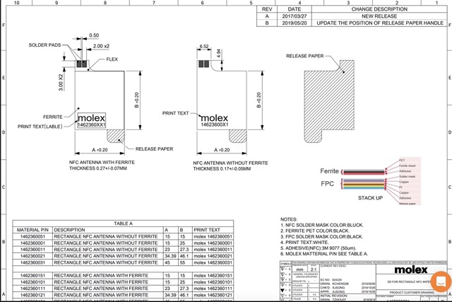 The data sheets surprised me a bit when looking for RFID antennas, there wasn’t an exact standard format. Some sheets were just product specs, others included descriptions for the type of antennae and graphs for sensor/radio wave perception tests. From this, I figured using a low frequency RFID antenna might be best for my Tarot Tutor mat so that the mat does not accidentally engage with and interpret cards that are just mid shuffle or still in the deck.