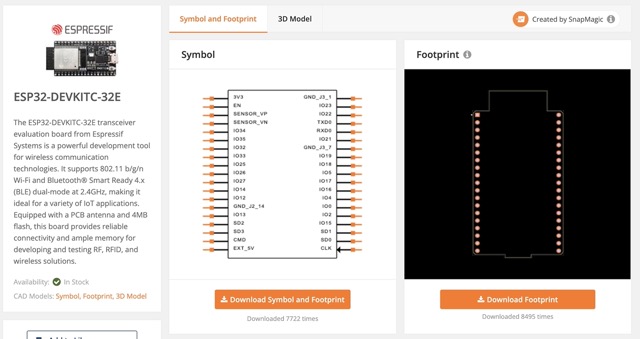 Use SnapMagic to find KiCAD files, as well as some where to buy parts!