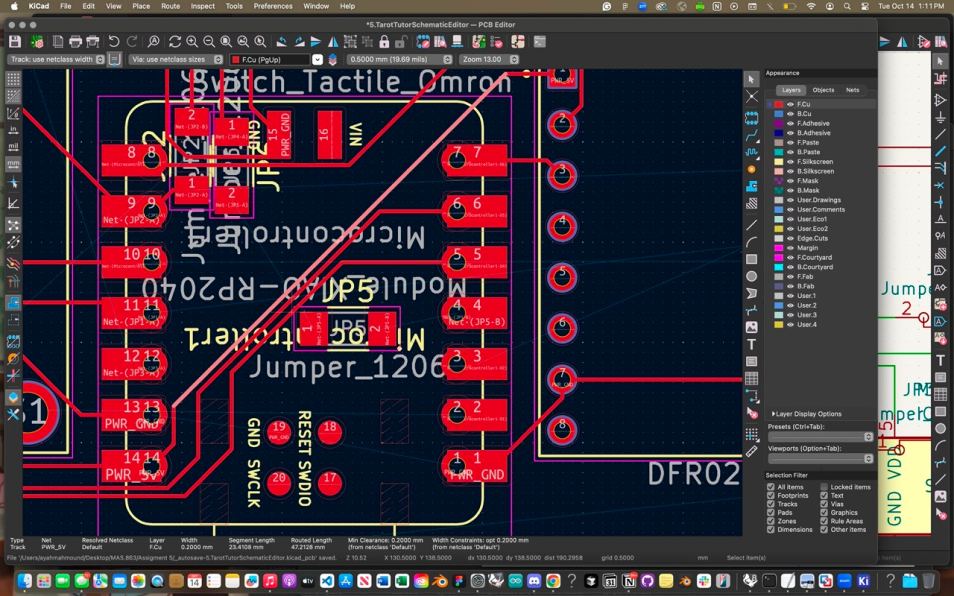 at the pinouts for every part you load!! Made wiring a lot easier.