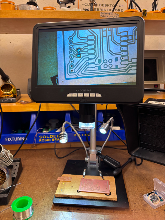 I taped my PCB to a piece of cardboard and clipped it to a microscope. To