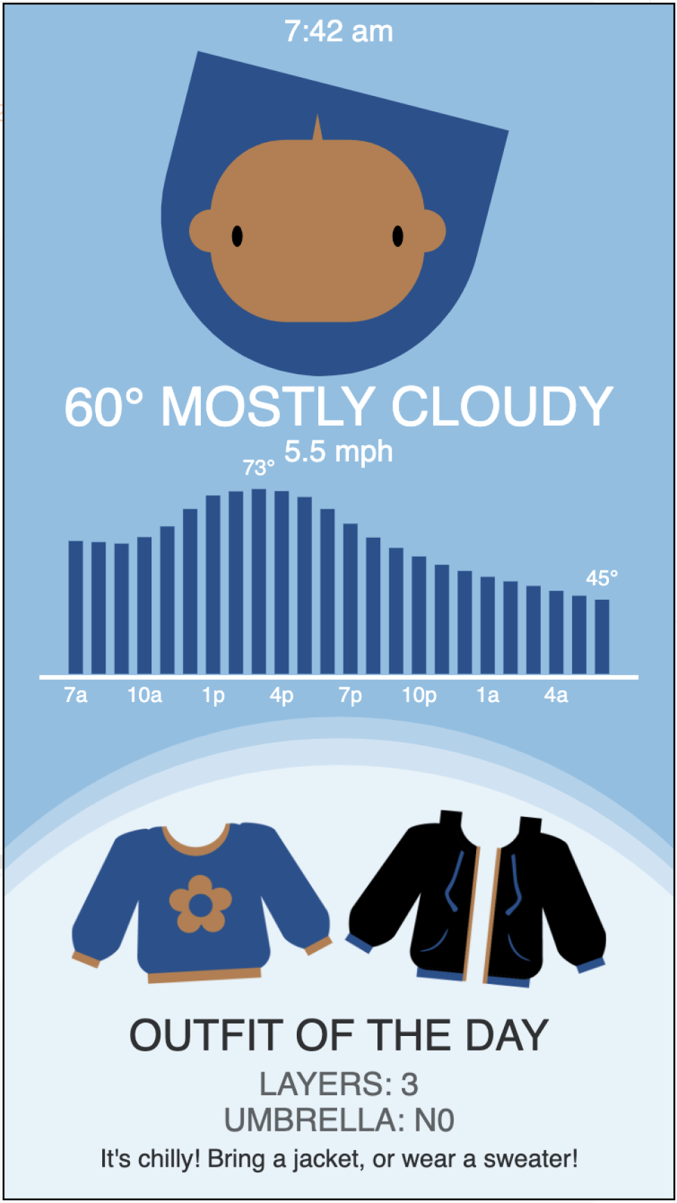 daily temperature, and something that could indicate what type of outfit to