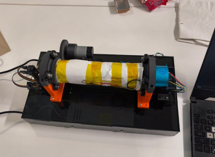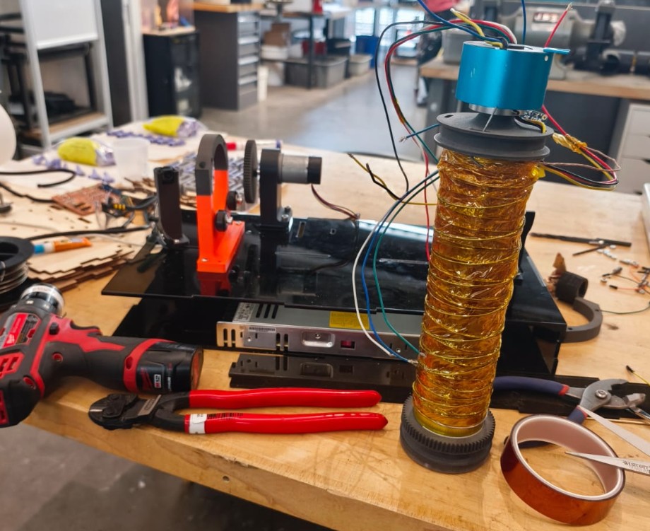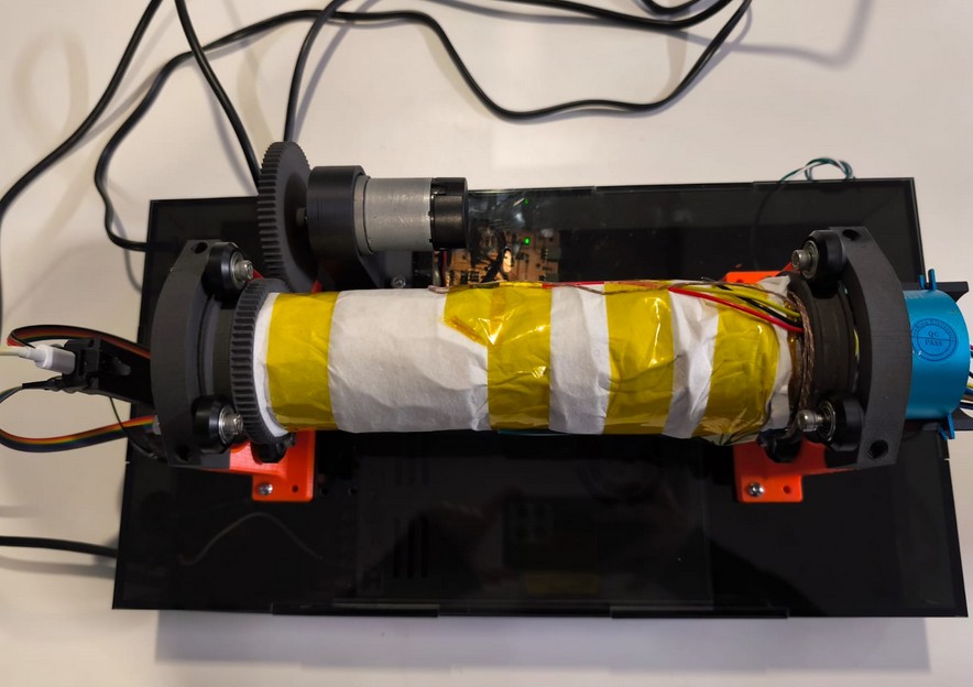 - Tubeholder: Allow free rotation of the cylinder. This requires a slip ring to allow for the rotation of the wires. Ideally adjustable for different lengths of tube.
