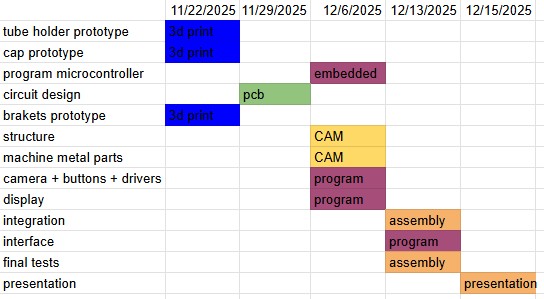 - Cilinder: Transparent polycarbonate cilinder that can hold at least 1kg of wax. Ideally, it can be interchanged easily (quick release) and adjust for other tube lengths. Even better, to have a valve system that allows to easily fill it up.