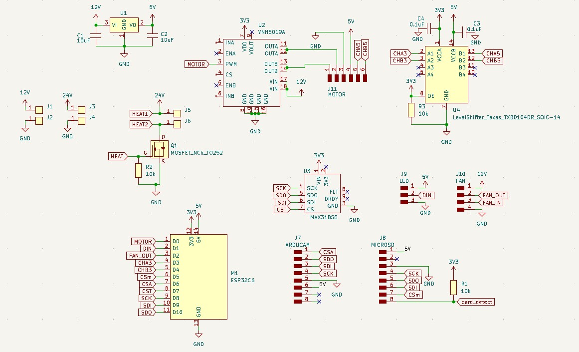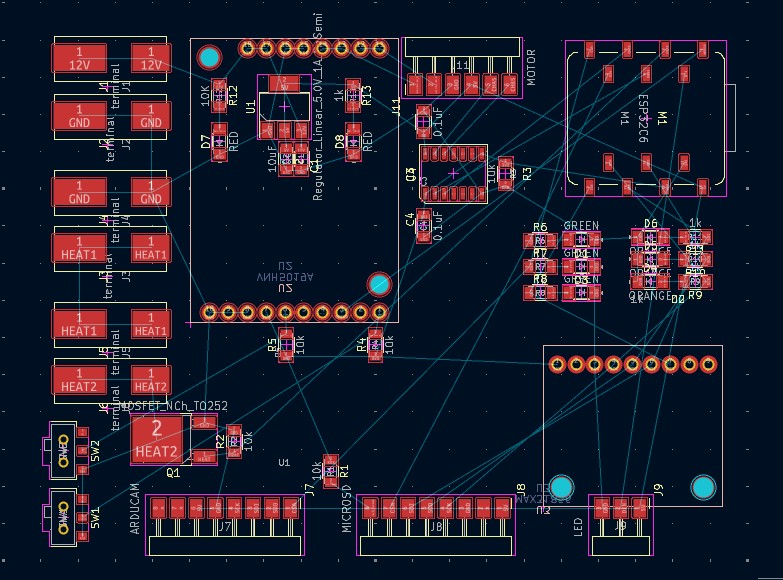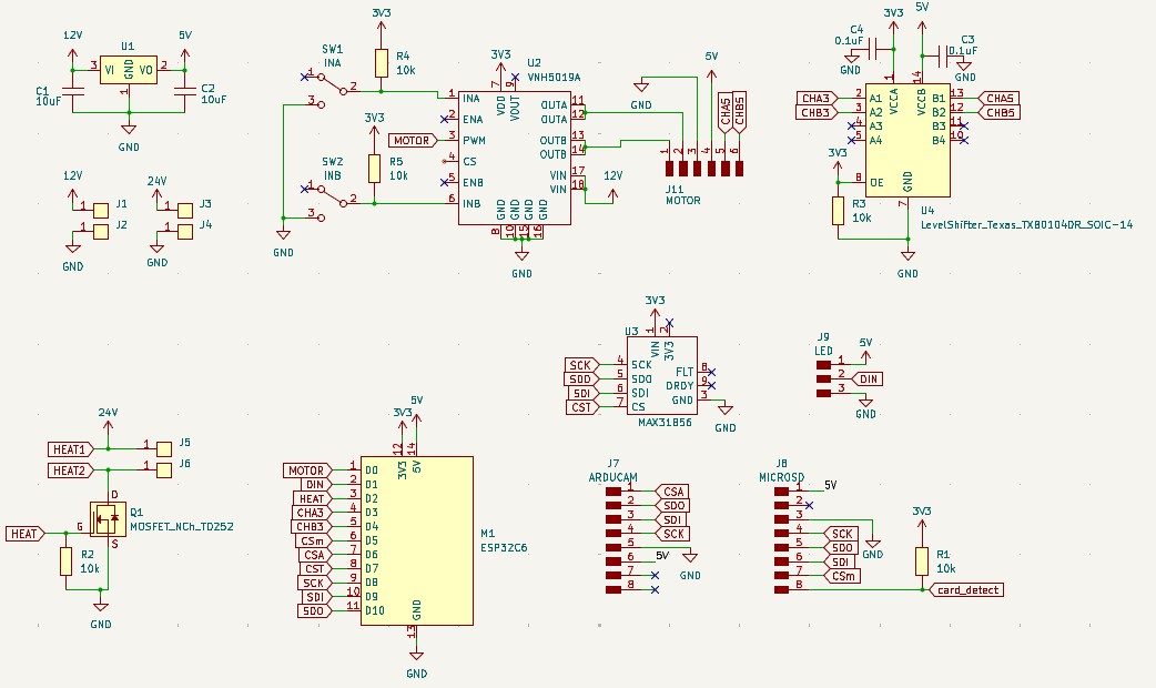 - Microcontroller: to control display, camera, motor, heater and temperature sensors. Migh need a microcontroler separte for the cameras. Internet connection to allow for camera information and upload new programs.