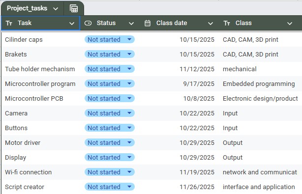 Big update: that calendar was not realistic. The weekly assignments did not all line up in the way I hoped for. One month before project is due, this is the real timeline: