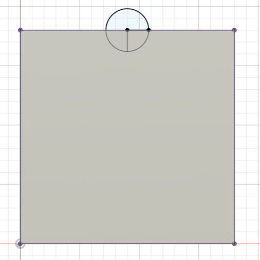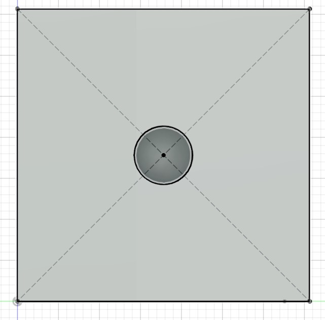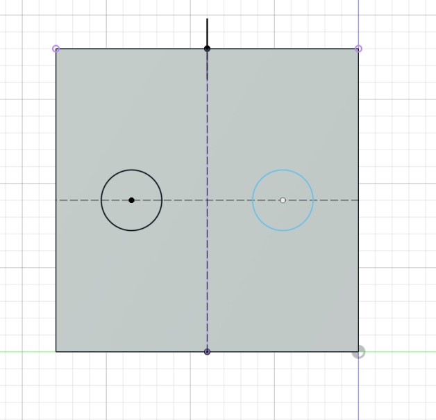 After this, I needed to make the dots for each face. I decided to dig out a half sphere to represent the hole instead of just using the hole feature and have it be cylinders. For this, I would use the revolution tool. I need a plane in the middle, so a created a new plane using the offset plane tool. I used parametrized values to offset it at exactly the half of the cube. Which this plane, I created a new sketch. In this sketch, I drew a sphere and made sure it as completely constrained.
