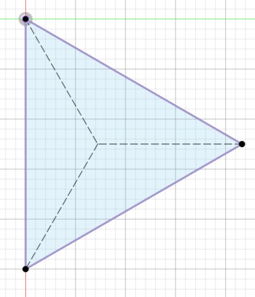 So I decided to tackle the next die, a 4d. This dice has 4 faces, and each face has 3 numbers and depening on which one is pointing up, that is the number that was rolled. I started with a equilateral triangle. Then I did a plane offset to the distance same as the sides of the triangles. Then I did a sketch there, finding the middle of the triangle.
