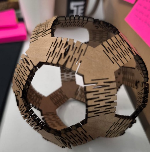 Confident in the parameters, I turned to the next fun stuff. I originally was very ambitious. I wanted to make one of those animal puzzles. And I wanted the pieces to actually shape a different animal as well, a very different one. In my head, I could make a giraffe and the neck pieces could become a tail, so I was making sketches of how I could make a kit that could be a giraffe when assembled one way and a lizard in another. I started researching how the puzzles are made but promptly realized the CAD design of organic shapes is currently beyond me. I shifted into a brand new idea, which was making a globe, and I wanted it to be able to unfold into a flat map. I needed it to be somehow flexinle so the projection would work out.