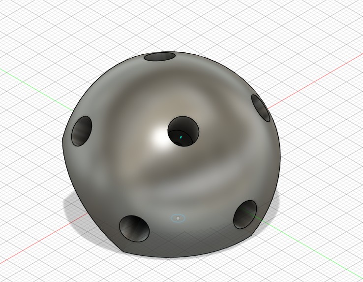 The vertices would be 3D printed. I made a simple 3D model of the vertices in Fusion 360. It consisted of a sohere cut at the angles needed, with holes for the rods to fit in.