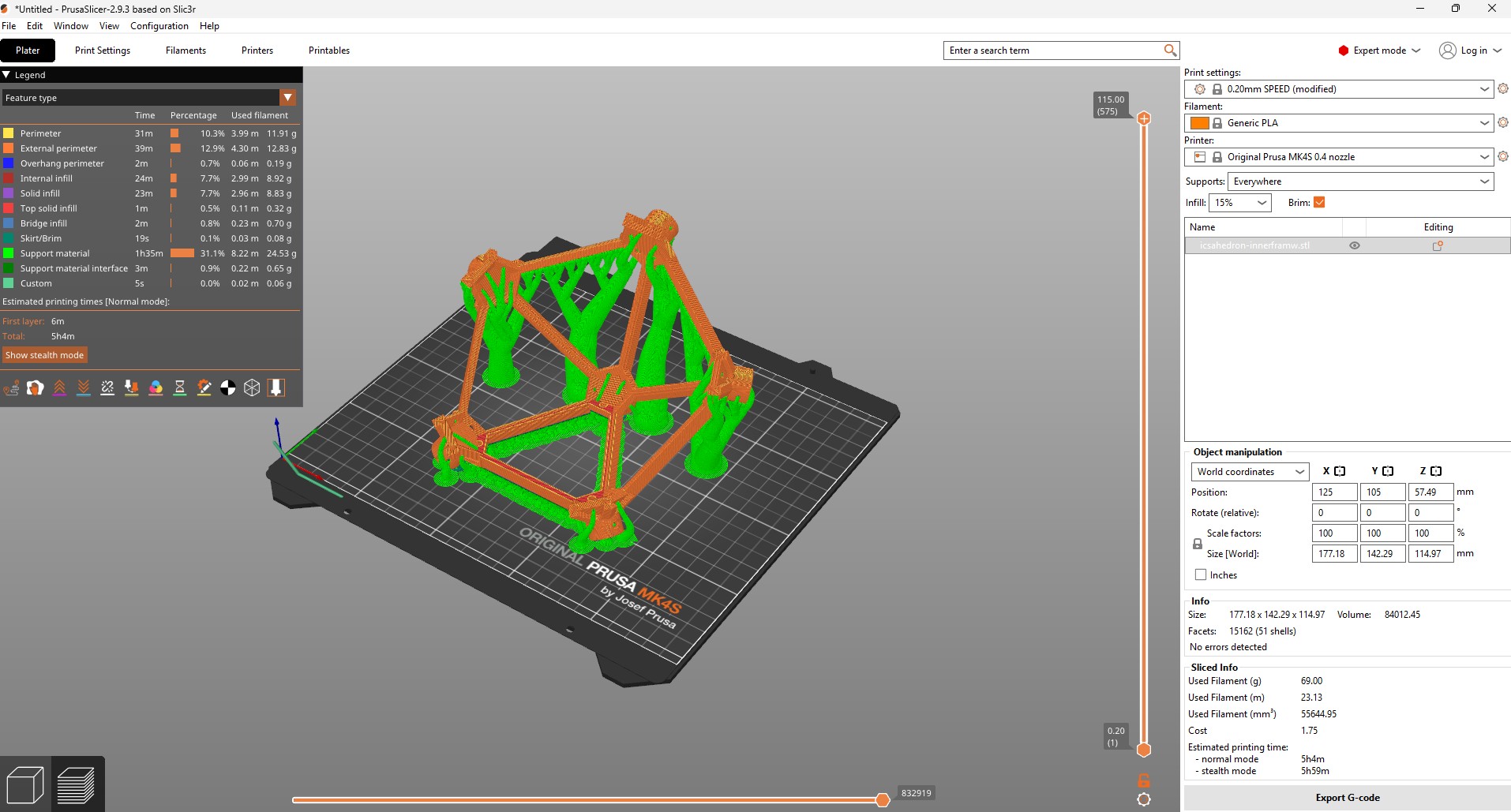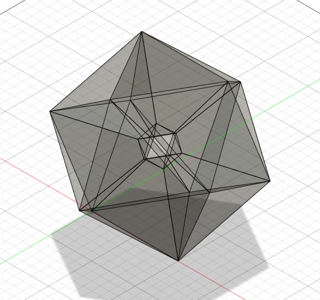 I changed the idea of using rods everywhere to thinking of solid faces that were also providing the structure. I still did not want to 3D print the whole thing, becaus eit would be very time intensive.