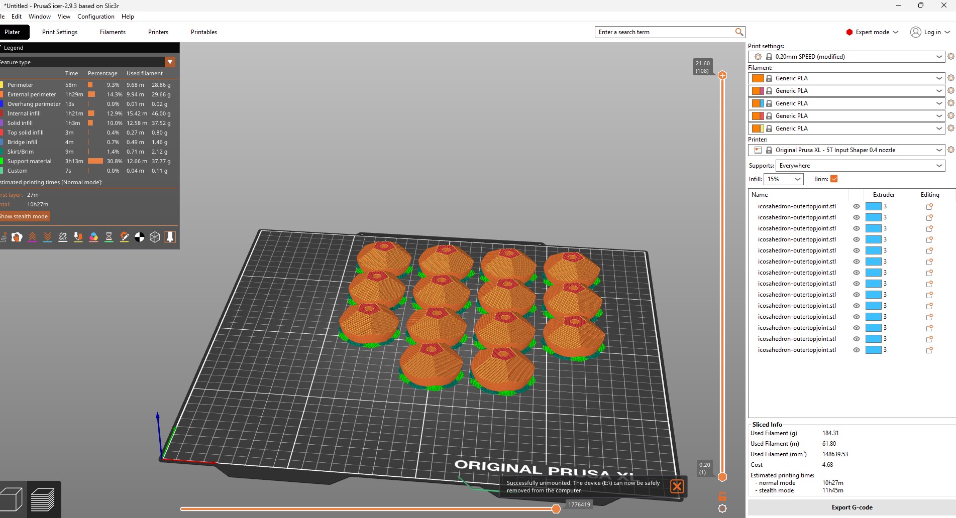 We also printed everything in PLA just in case, to keep building while we waited for the longer prints.