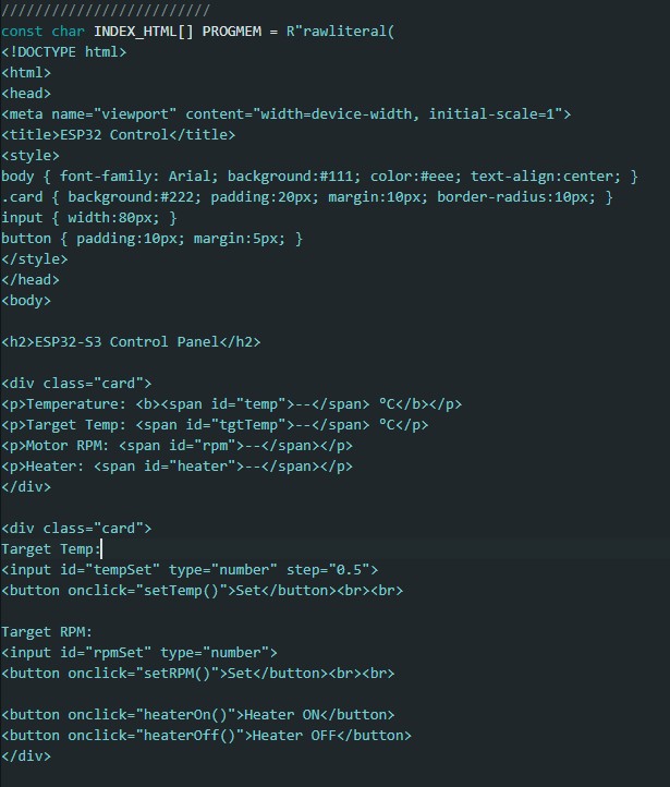 . It connected to the internet for last week's requirements, but for the GUI it made a simple embedded HTML code. I did not know this was possible with ".ino" files, so lets break it down.Trying to push this page I realixed putthing the code here got recognized as html and it broke it all. Don't do that.