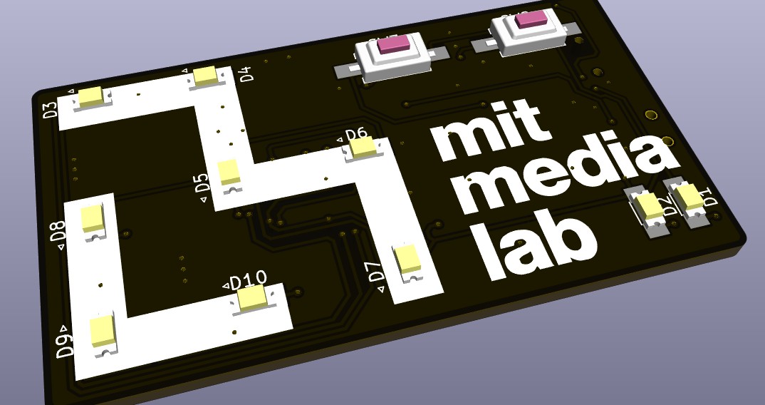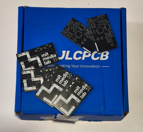 In addition to this board, I designed a board to send to a manufacturing house. Since a lot of us in the CBA section are affiliated with the Media Lab, and the class is within the Media Lab building, we figured we could order a board together with somehting about the Media Lab. So I designed a board with the Media Lab logo and some LEDs that would light up according to how they were programmed using a SAMD21 microcontroller. We ordered it through JLCPCB, which was super easy to use and had great prices, coming up to about $31 for 30 boards, and it arrived in exactly 1 week.