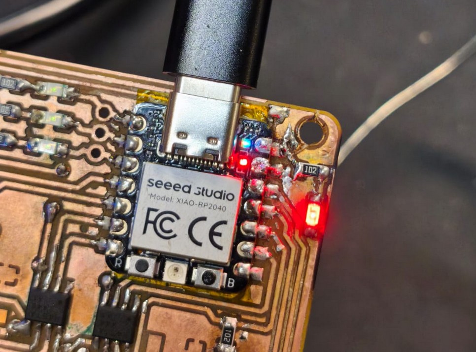 I probed again, found some mistakes from soldering and other traces touching. I was finally confident enough to plug it into the computer and test the code.