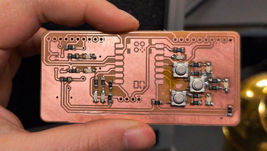I needed to do some cleanup in some traces that had little bridges and some that didn't get cut, but it was all solved with a box cutter. Filed the edges, sanded the board, and ready for action.