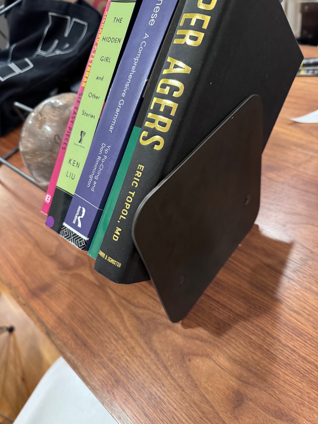 I needed to apply several pre/post-processing steps to create a finished bookend. Because carbon steel rusts easily, I decided to apply cold bluing with selenium dioxide to darken the color and prvent oxidation with a paste wax finish to seal against moisture. Here are the post processing steps: