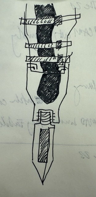 The cores taken from these devices tend to be about 50cm long, which I expect to be too long for a 3D printed part to hold up against. My thinking is to make a this component about 25cm long, so that the force exerted on the stick and the 3D printed tool end is not excessive. In order to compromise operation between the GPS button and the sampling functionality, I imagine that the sampling end will be able to screw on and off of the bottom of the stick as needed, and when not in use it can be attached to a holster on the upper device.