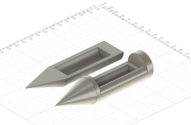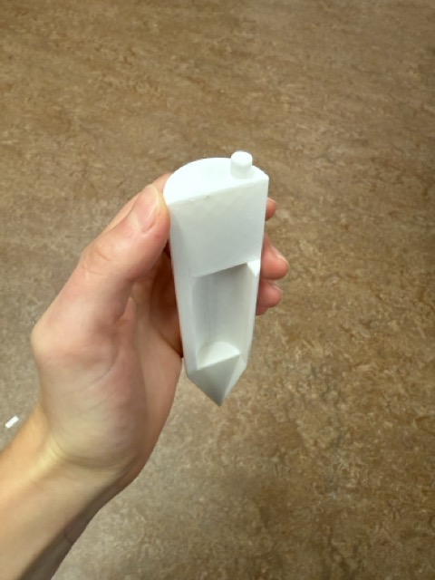 The other progress I made this week was towards developing my soil sampling device. I started out by designing and 3D printing two simple prototypes: one with absolute minimum features and a flat profile, and one with a round profile and a small wing to try to capture the soil sample better.