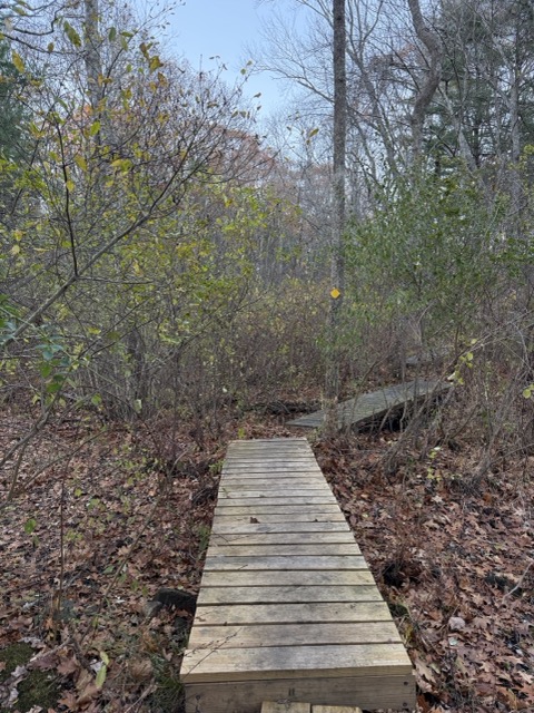 Then, I took them on a walk in the woods. I went down the trail near my house and stopped at a marshy area of the woodland, where the ground would be soft and boggy.