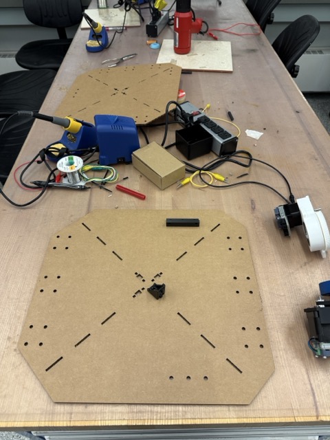 Another huge thank-you to Anthony whose knowledge was crucial to steering us away from some of the worst pitfalls (and whose wisdom allowed us to find some pitfalls anyway). Also thank you to Quentin and Jake for the amazing work putting together the control protocols and CAD components for these kits; this project would obviously not be possible in the given timeframe without that contribution, in particular Quentin's special ESP board that allowed us to control the steppers. Finally, thank you EECS shop! Good job team!