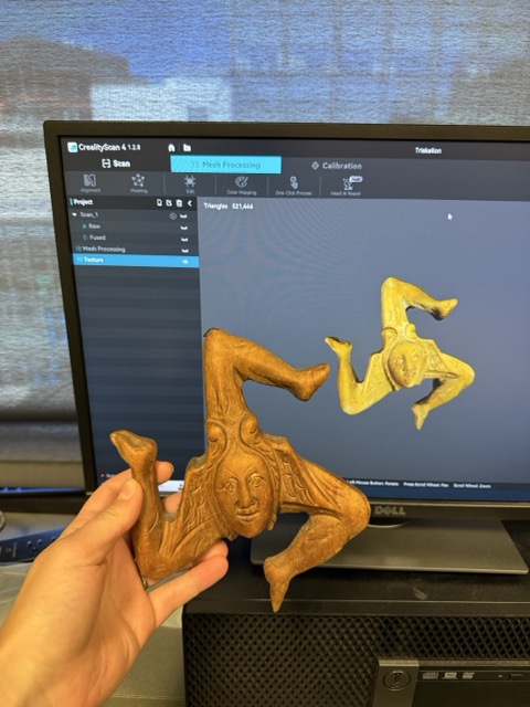 The second part of our assignment this week was to use the 3D scanner to scan an object. I brought in a Sicilian triskelion I had purchased in Venice from a church thrift store.