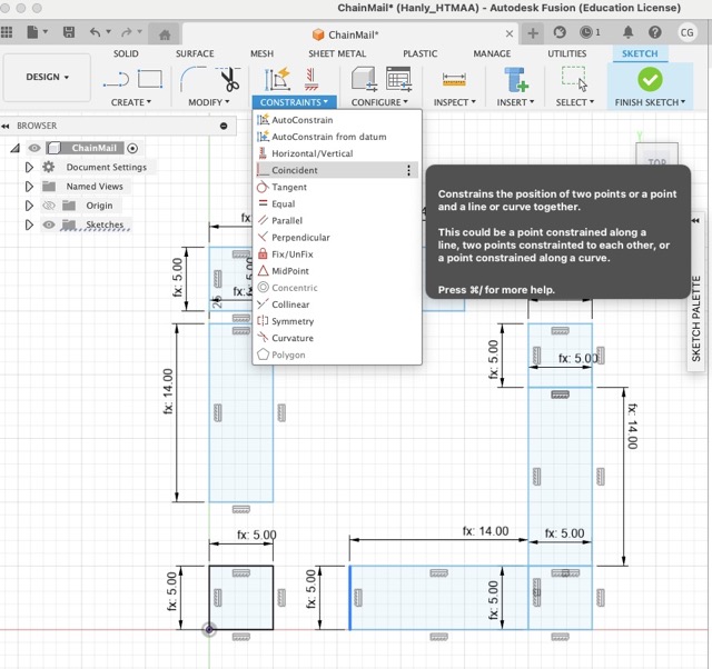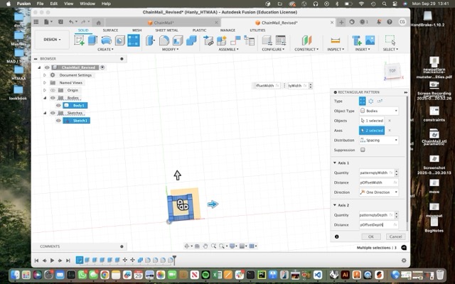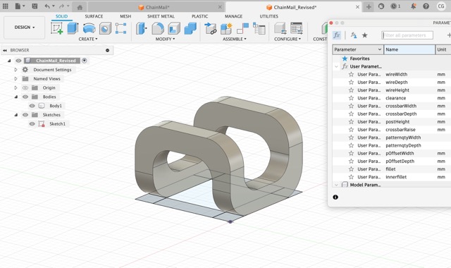 Conveniently, Autodesk Fusion offered a parametric chainmail tutorial on its open-source Instructables website, which was a new resource to me and appears to be an extremely useful one.