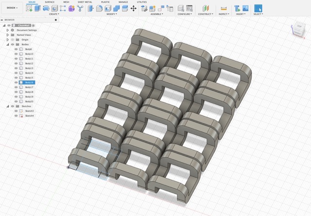 Since chainmail consists of small, interlocked shapes in a repeating pattern, it seemed like a good opportunity to advance my parametric design skills. For this reason I chose to implement my design in Fusion this week.