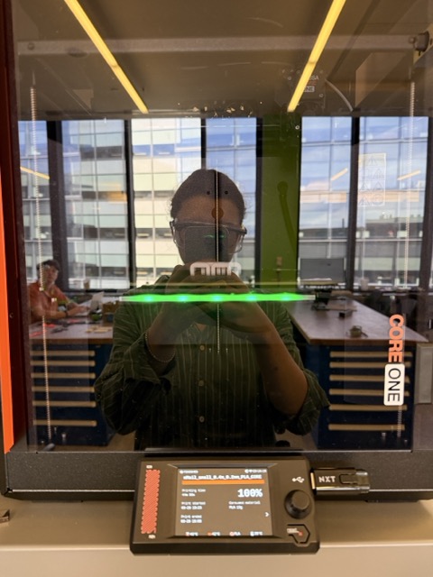 This version threw an error in the slicer about lacking support or contact with the bed, which I think is because I created more rounded elements and by making them smaller also reduced the footprint of the print area. However, after consulting EDS lab staff, we decided to give it a try anyway: