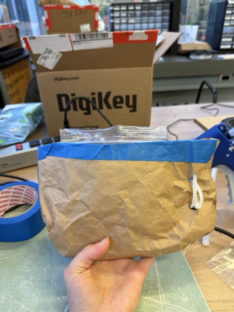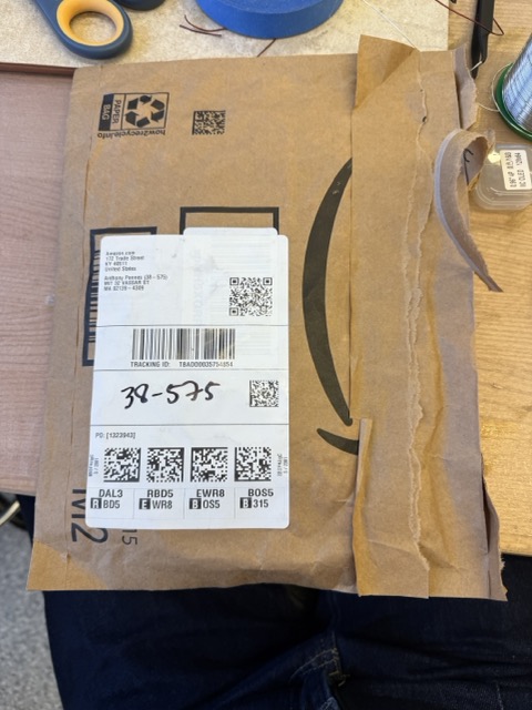 In order to improve my odds of transporting the board between home and school without breaking it, I decided to build a transport case with salvaged materials from around the lab. I started with an Amazon bubble mailer: