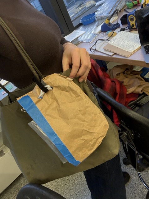This I turned inside-out, lined with bubble-wrap, and fixed for closure with the top portion of a plastic bag: