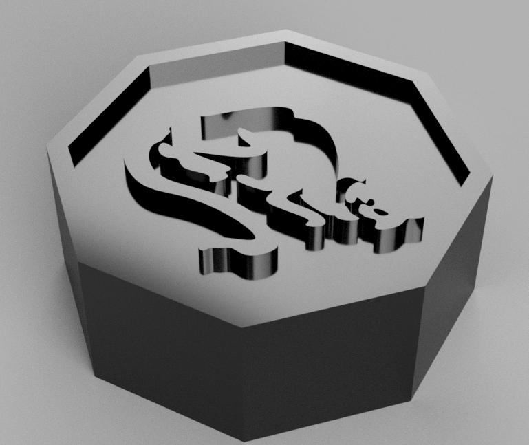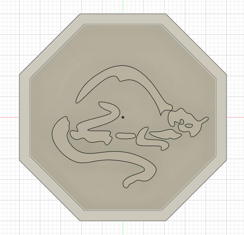 Finally, I started working on 3D modeling my necklace design. I first created a sketch of the base of the necklace, which is an octagon. Then, I used the extrude feature to stretch my sketch into the 3D necklace. I created a smaller octagon on the top surface with the diameter of 22.5mm and invertly extrueded the smaller octagon by 2mm. On this plane, I added the image of the shape I want to add on my necklace and used the curve line feature to trace the outlines, before extruding the outlines by 2mm to complete the design.