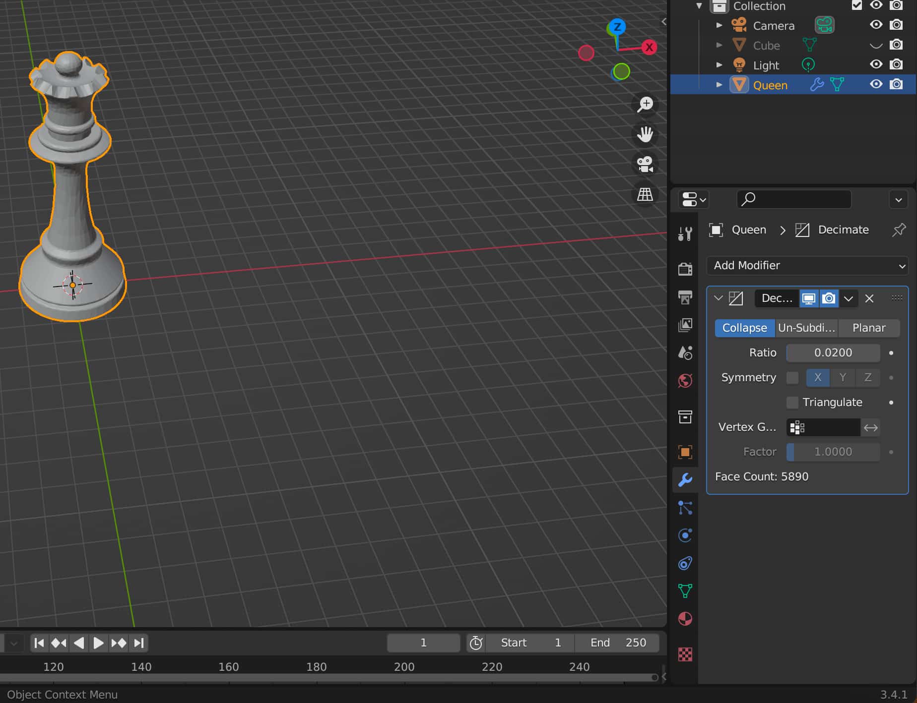 I needed to make my pour hole bigger and also add a air hole for air to escape so that my cast doesn't have too much air bubbles. I also want to get rid of the support on my chess piece for a better print. Here's my new design: