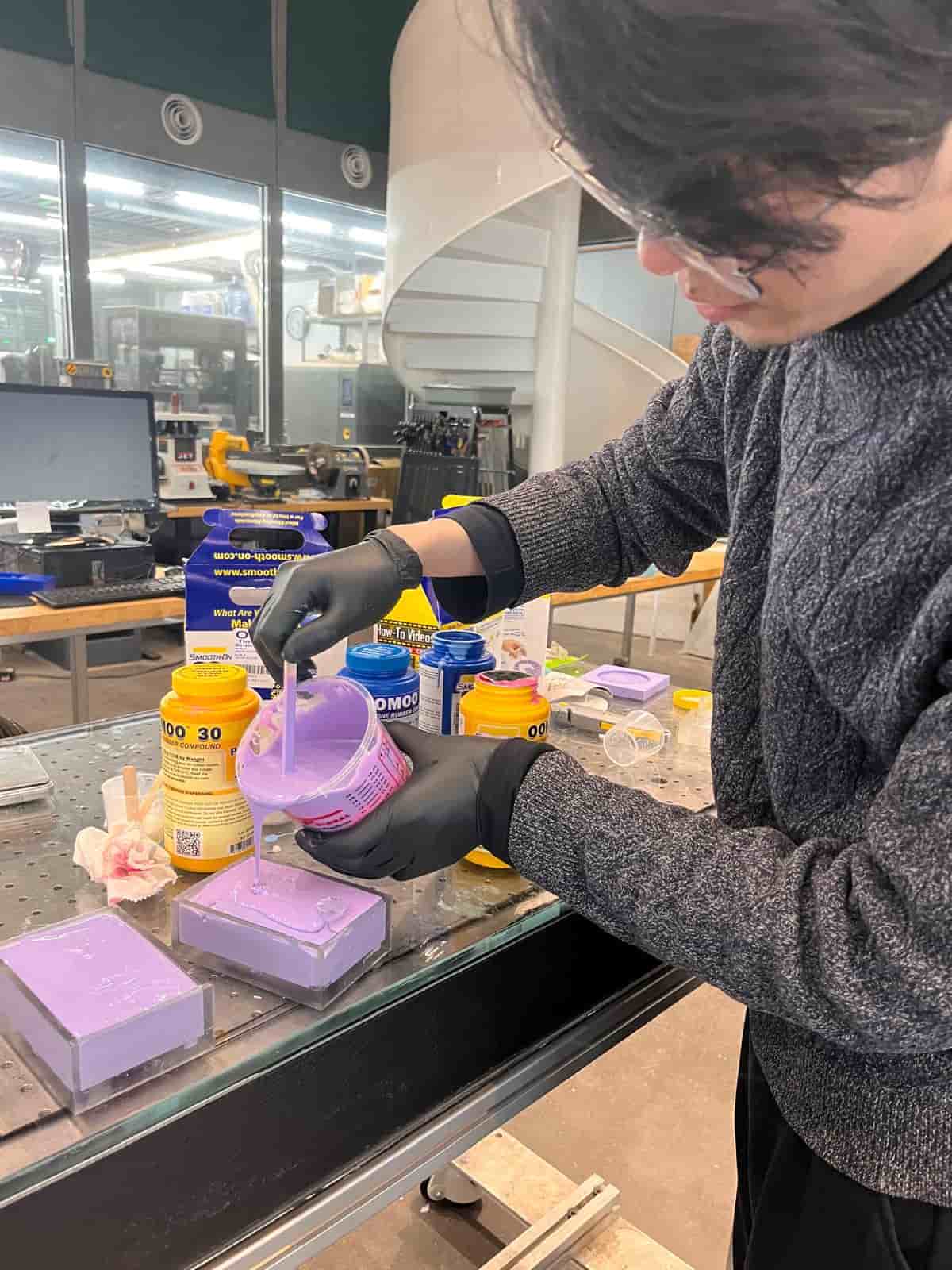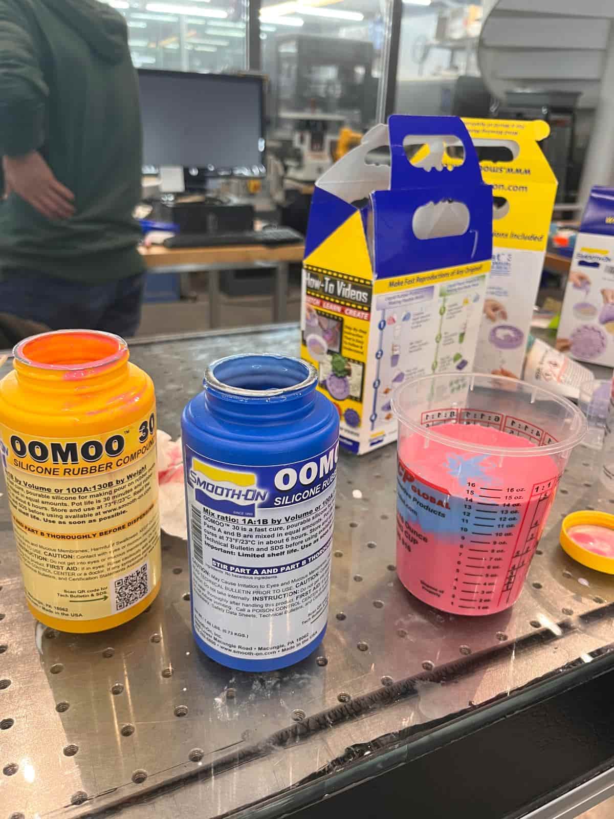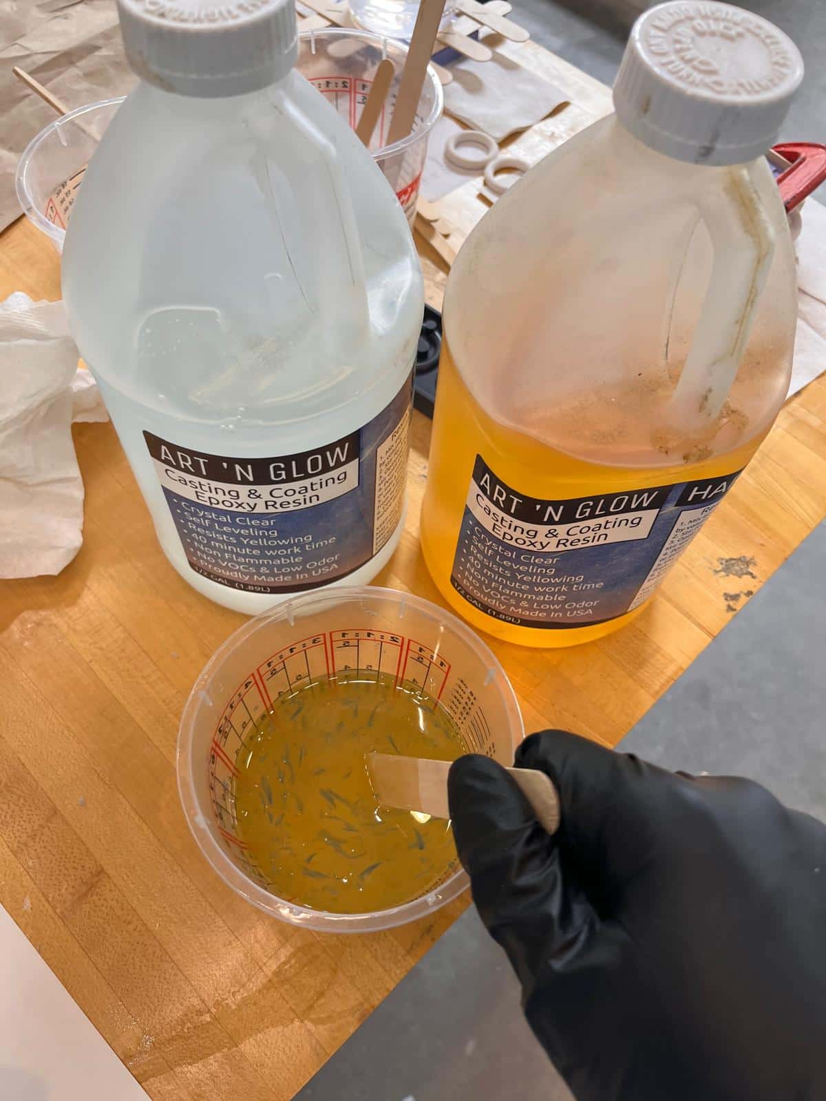 I mixed them with a 1:1 ratio and poured into my container box. I needed some extra so Rui shared some of his with me. Now it's time to wait for six hours.