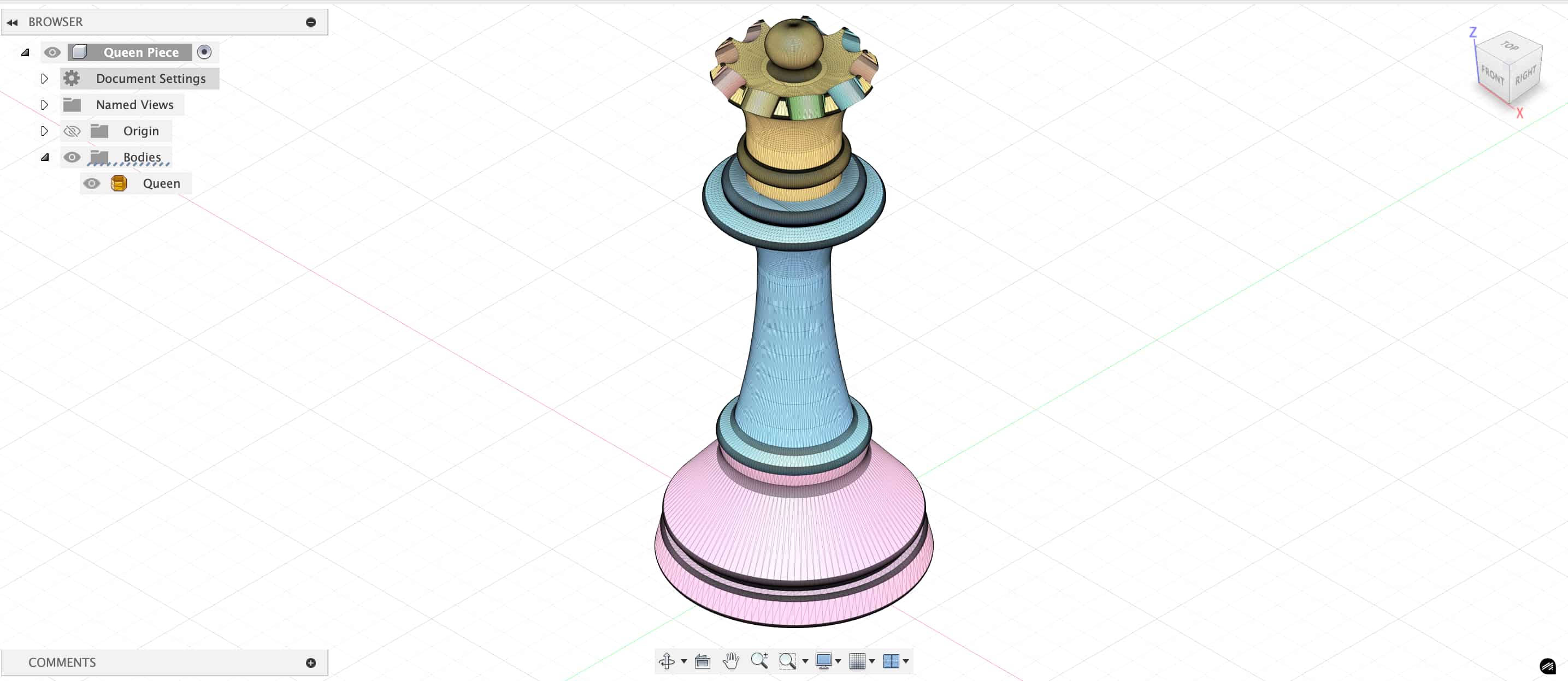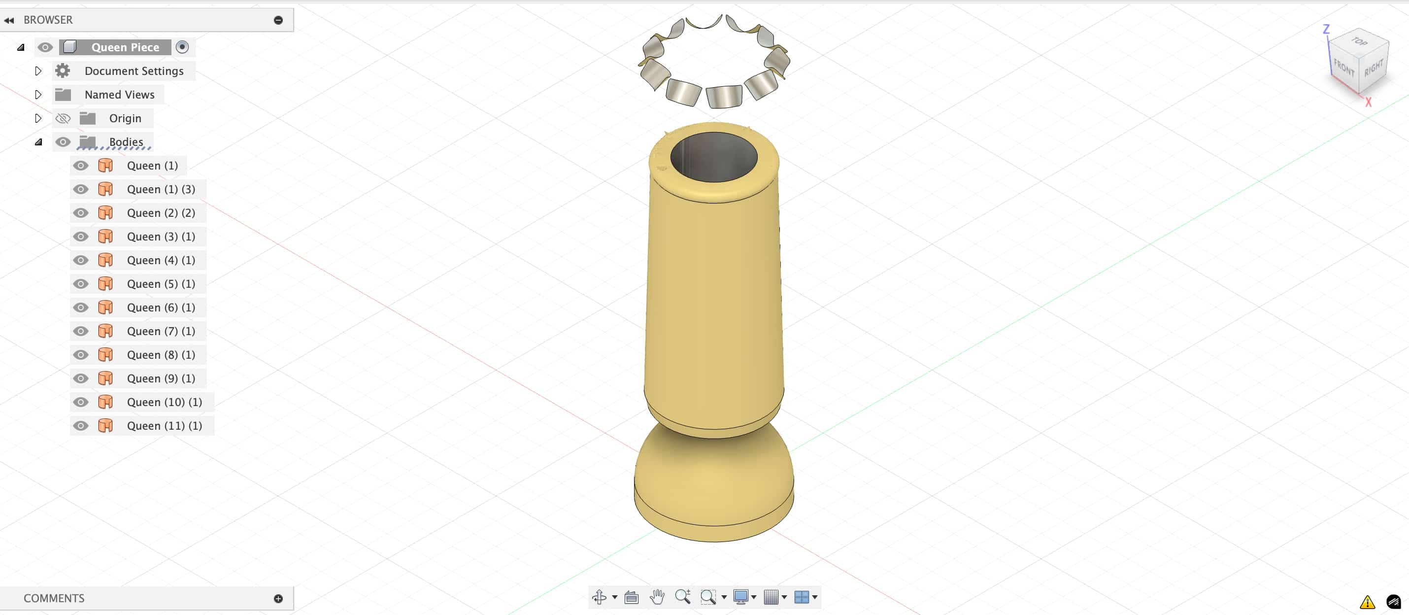 I then thought it would be easier if I can find a direct source to native Fusion 360 model. Fortunately, I found models for all chess pieces here