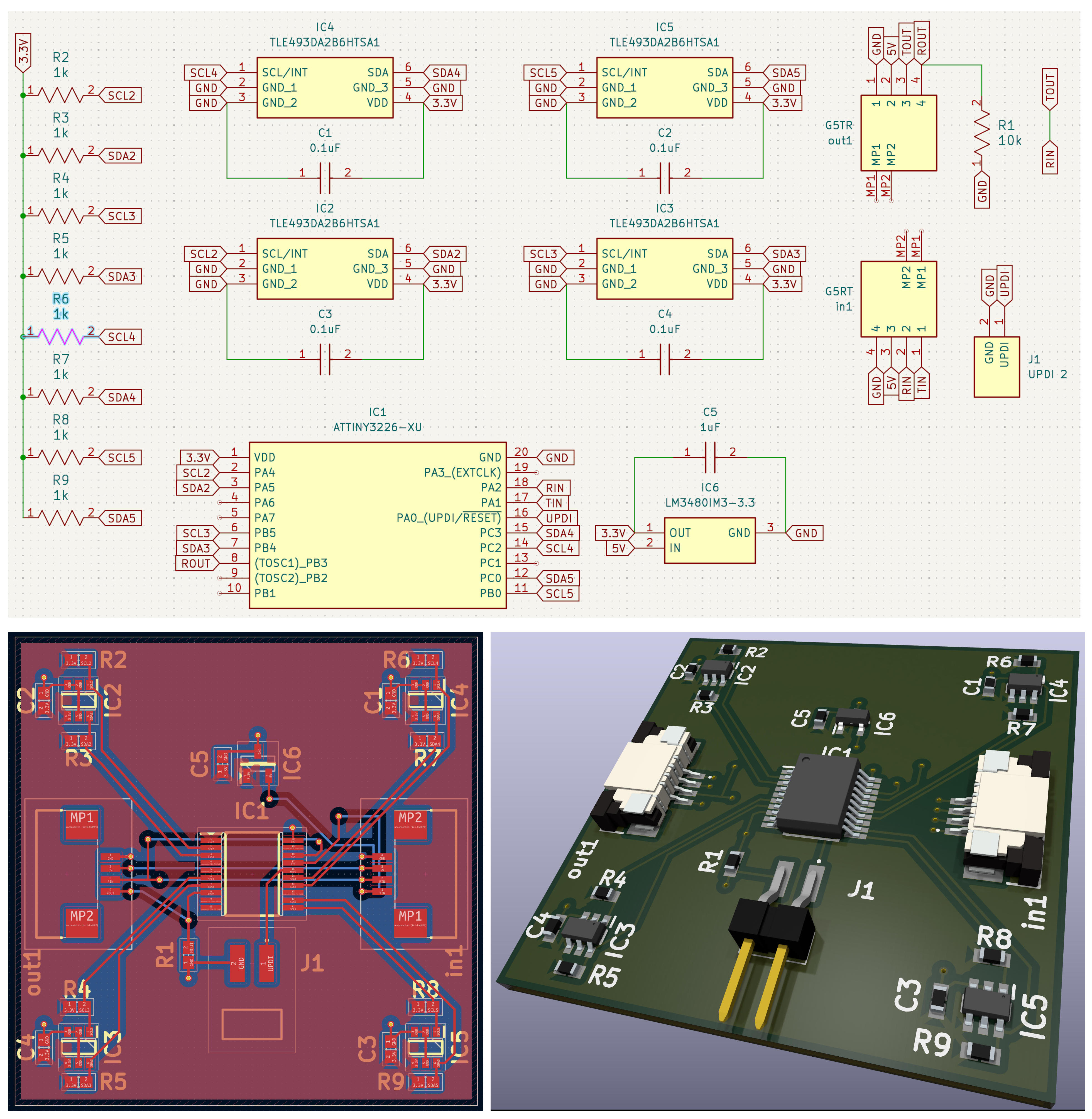 Similar to the schematics, there are so many things to be connected and this time, I cannot use net labels to bail myself out. I had to move many components around and test the best location that would allow easier connections. I tried to do this by placing the components closer to the pin location, and the bypass capacitor and pullup resistor close by too.