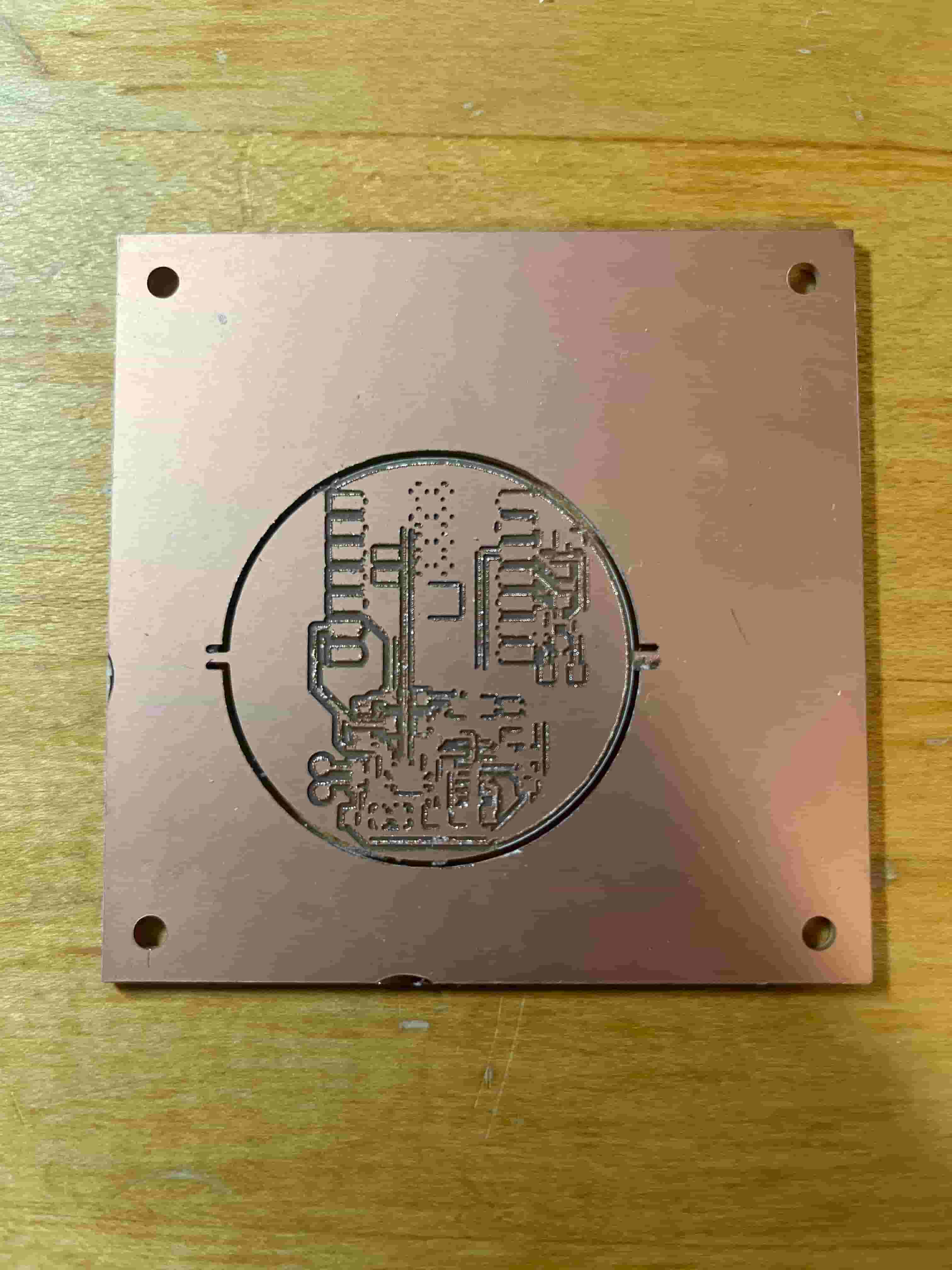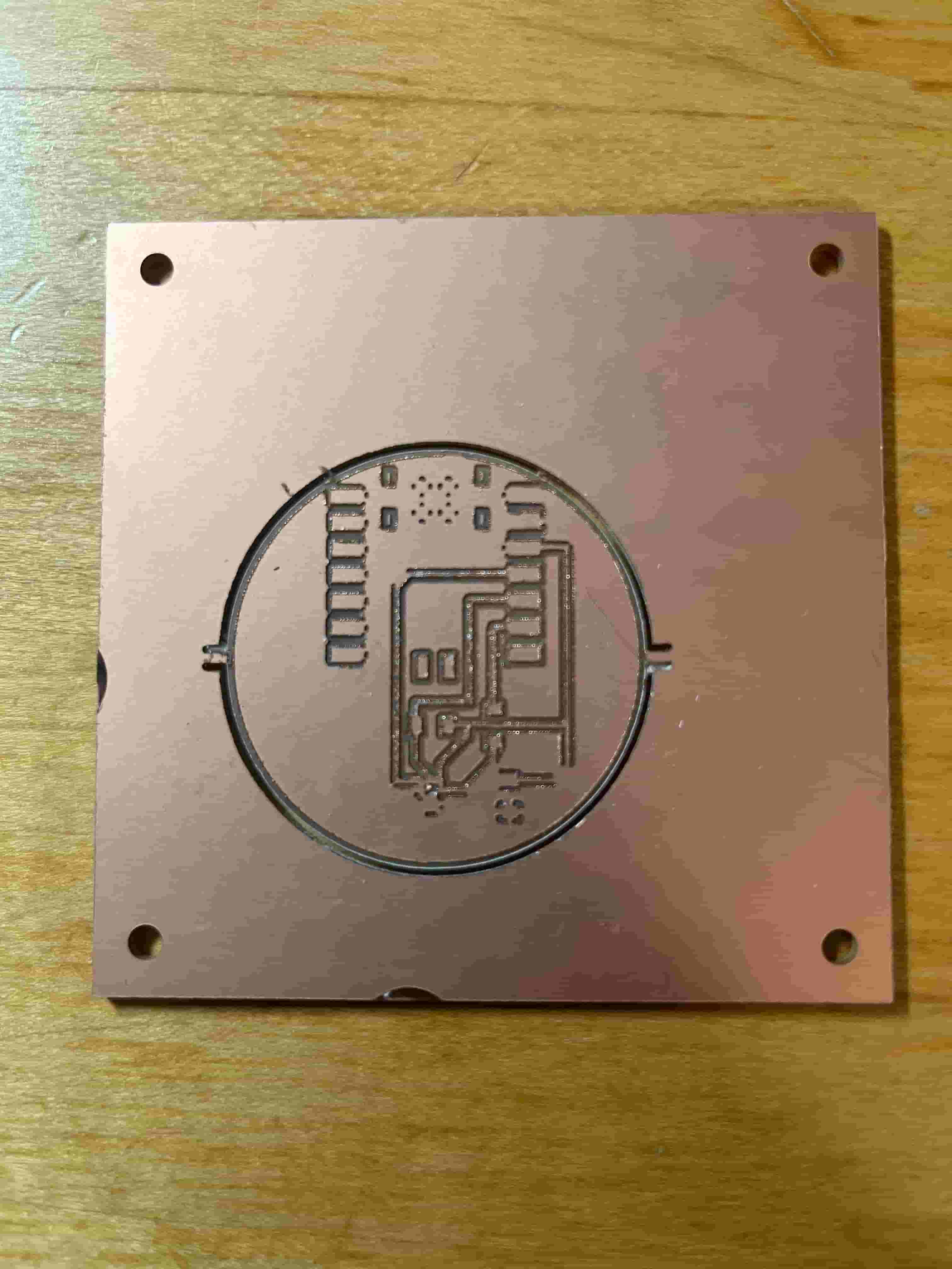 I first started to work on milling the board I designed last week. However, when I started to print my board I found that the probing is actually going outside the board I chose. I wanted to design a small circular board for my wearable product, so the dimension should fit on the board I chose to mill. I went back to my design and found the problem. I wanted a circle edge with diameter of 40mm, but instead I didn't notice the dimension is 40mm radius, so I got a circle with 80mm in diameter.