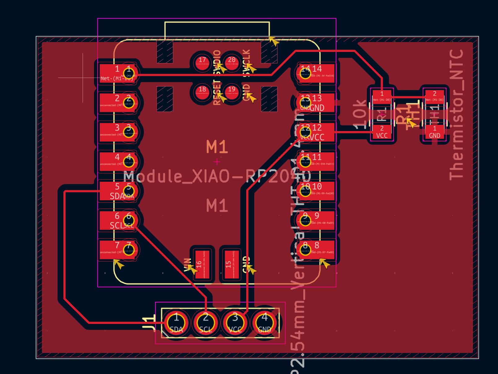 After learning these mistakes I made, I had no time left and have to resort to the simplest design I can think of. Let's just throw together a thermoresistor and a microcontroller. But I think the process of working on two boards and changing my design constantly actually made me a lot more confident in looking through the datasheets and working with KiCad.