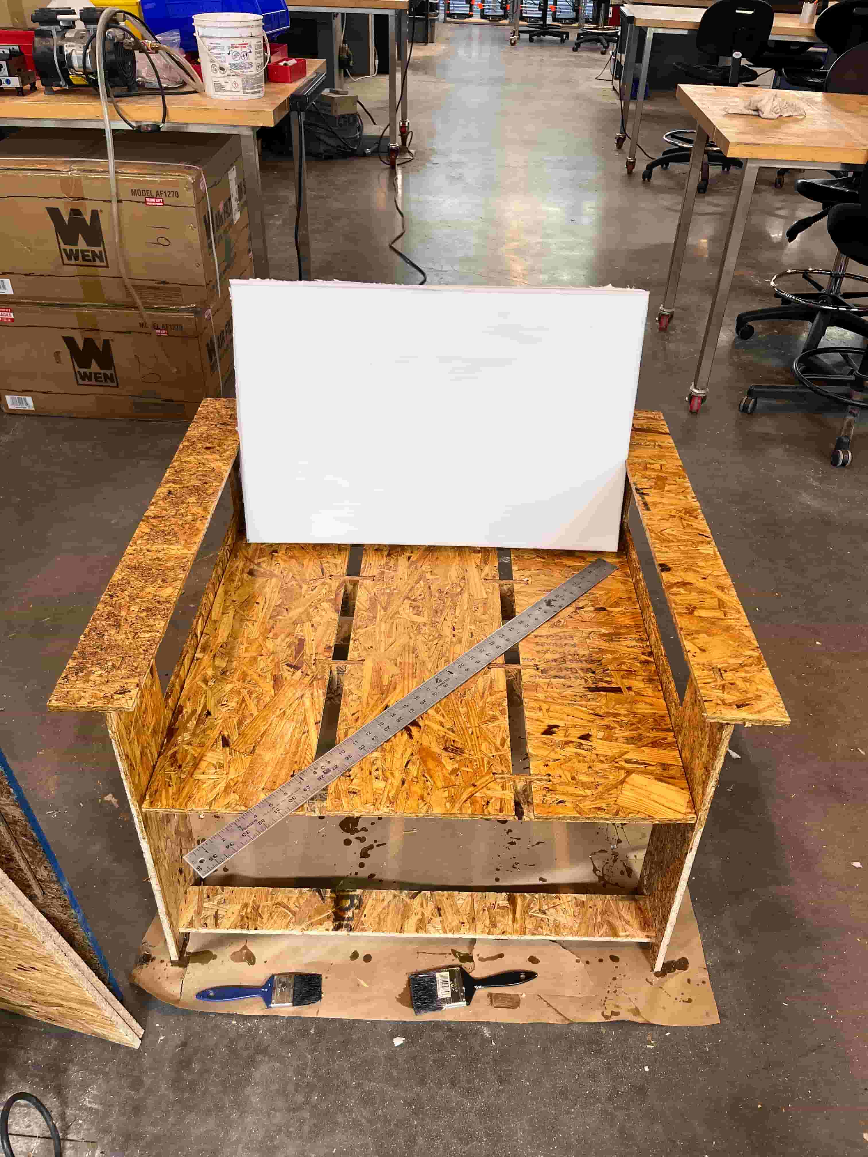 Then things got a little bit busy for me and I haven't returned in a few days. Due to many people's project being left in the shop and causing a burden, these projects alongside mine were removed. And my foam was taken by someone else. Fortunately, Dan provided me some cushions he found, and I just need to place them on my chair!
