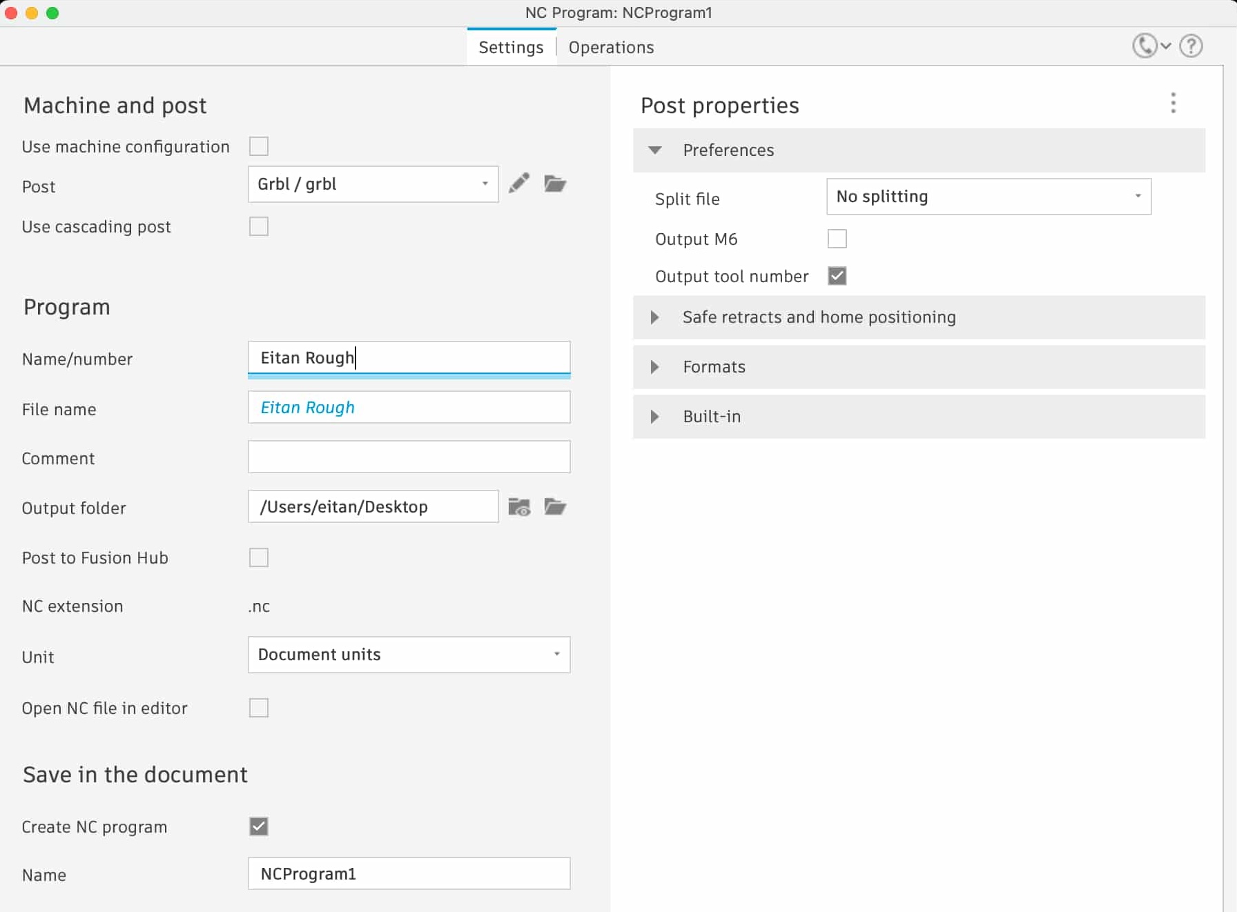 It honestly looks pretty cool. Next, I generated the grbl files for the milling machine, one for each pass: