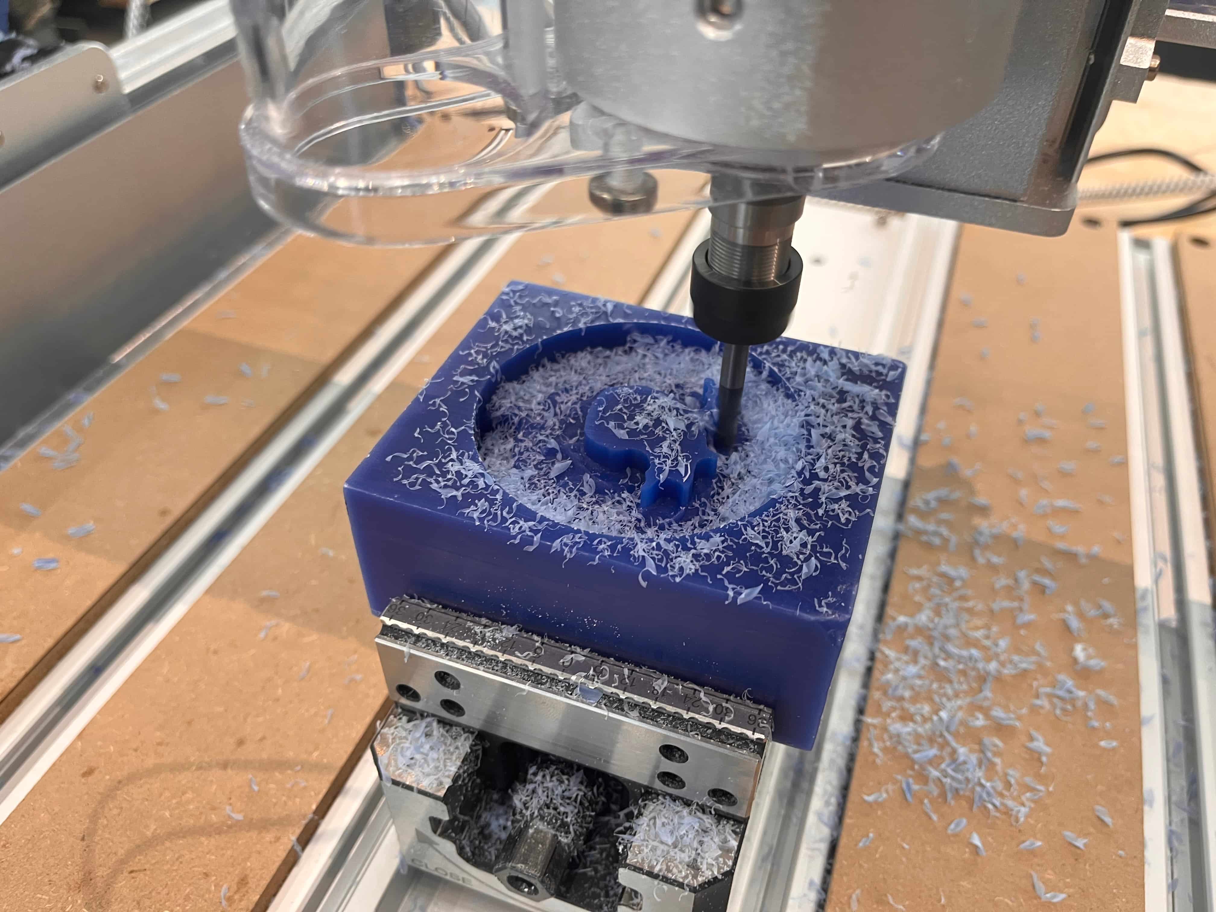 It turned out pretty darn good! I could have gotten more detail by doing another pass with an even smaller endmill, but I wanted to get started on the next steps. Onward and upward!