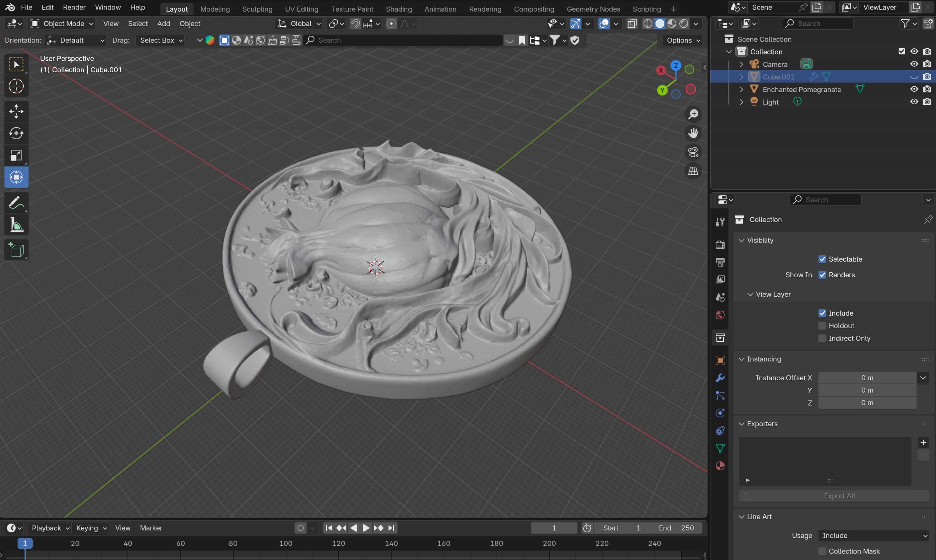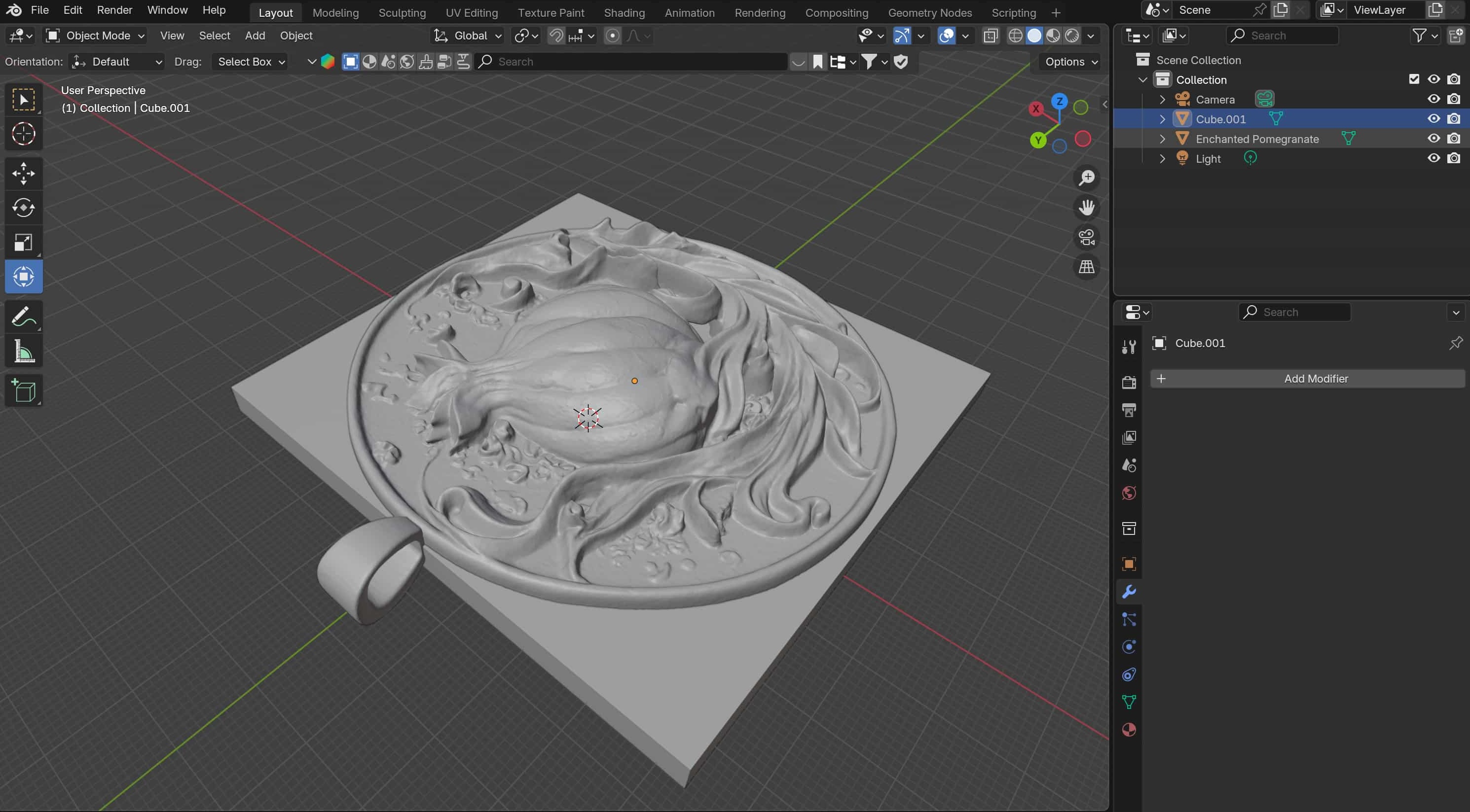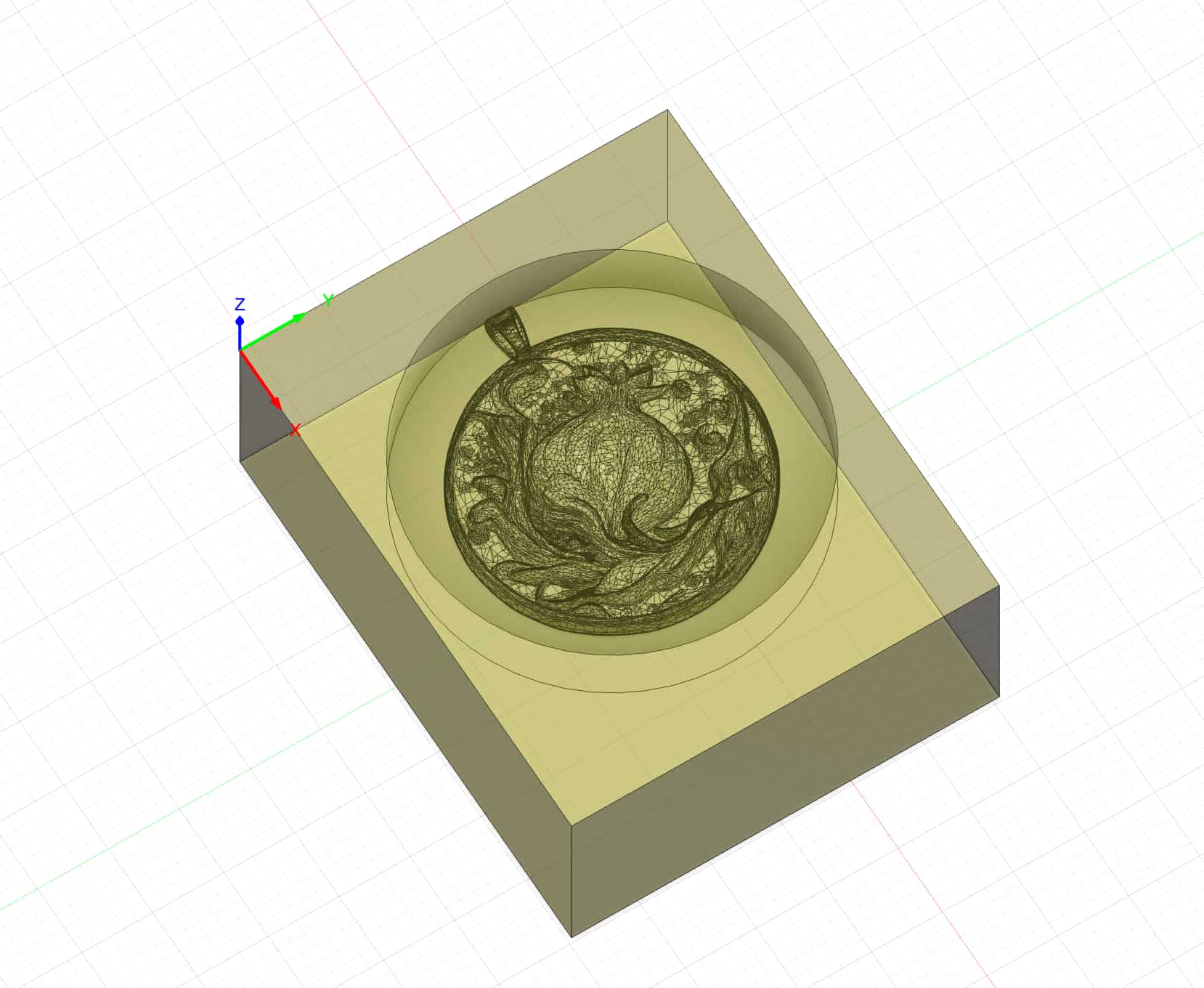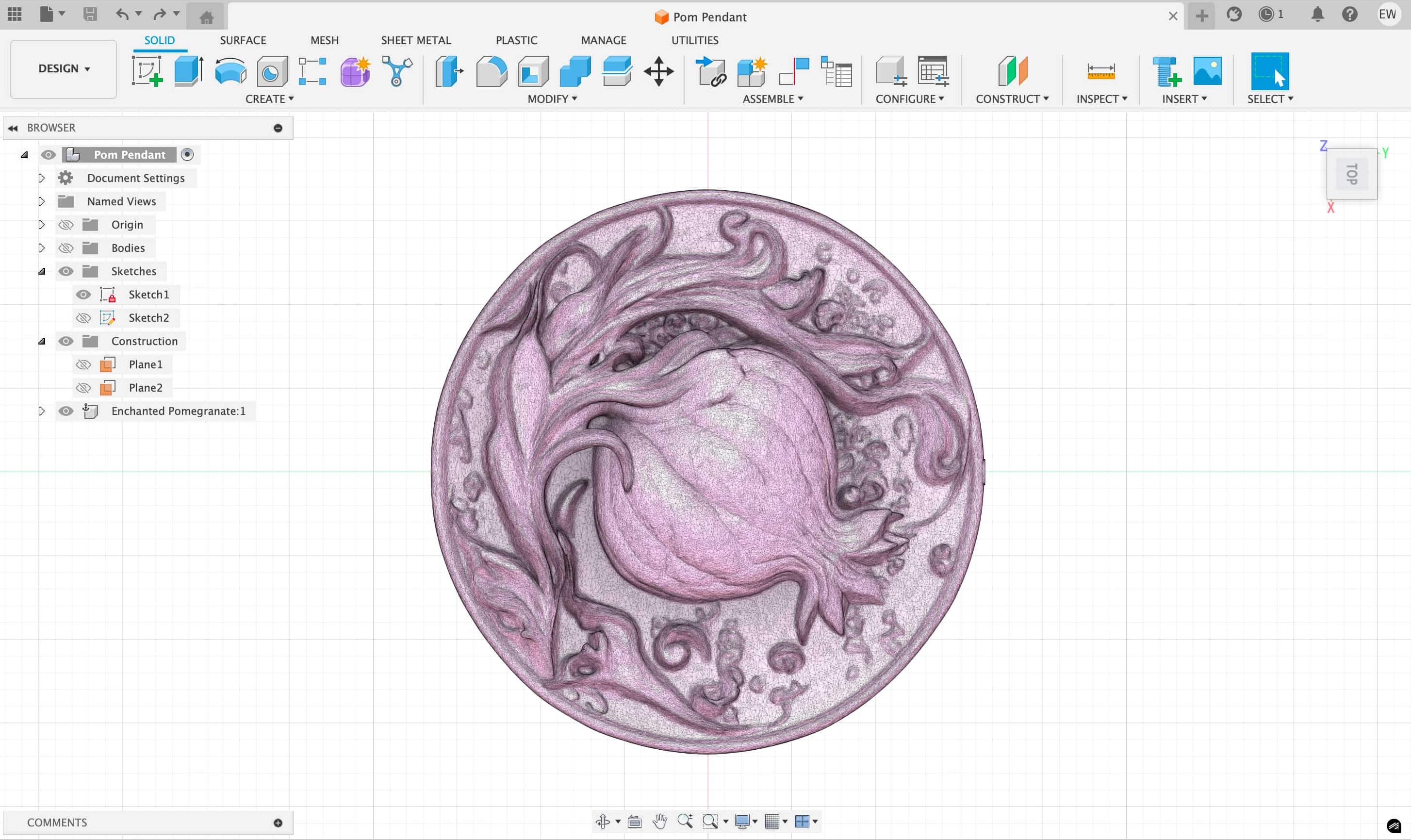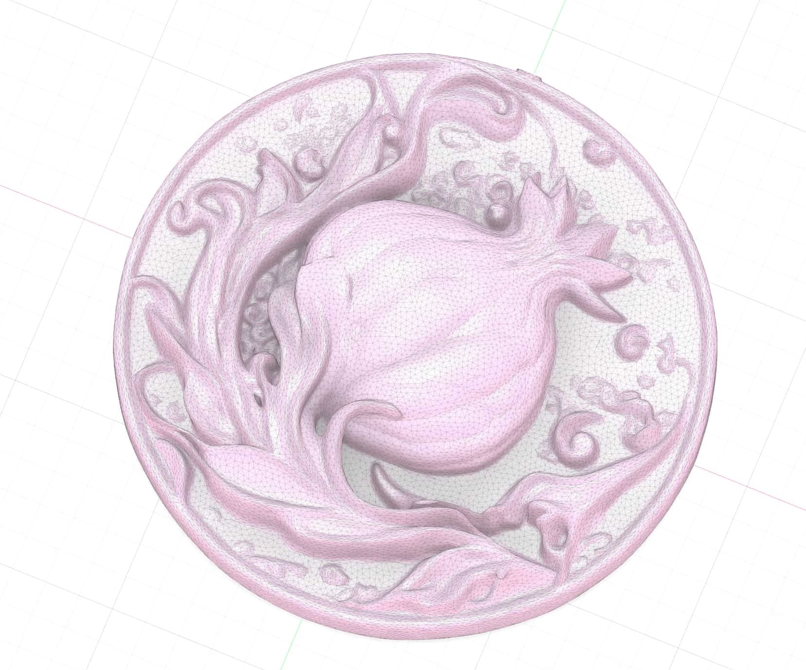 But first I needed my image! My partner loves pomegranates and the story of Persephone, so I thought I would try to make her something like a pendant for an eventual necklace made out of metal. So I loaded up Midjourney, tried out a few prompts, and landed on this: